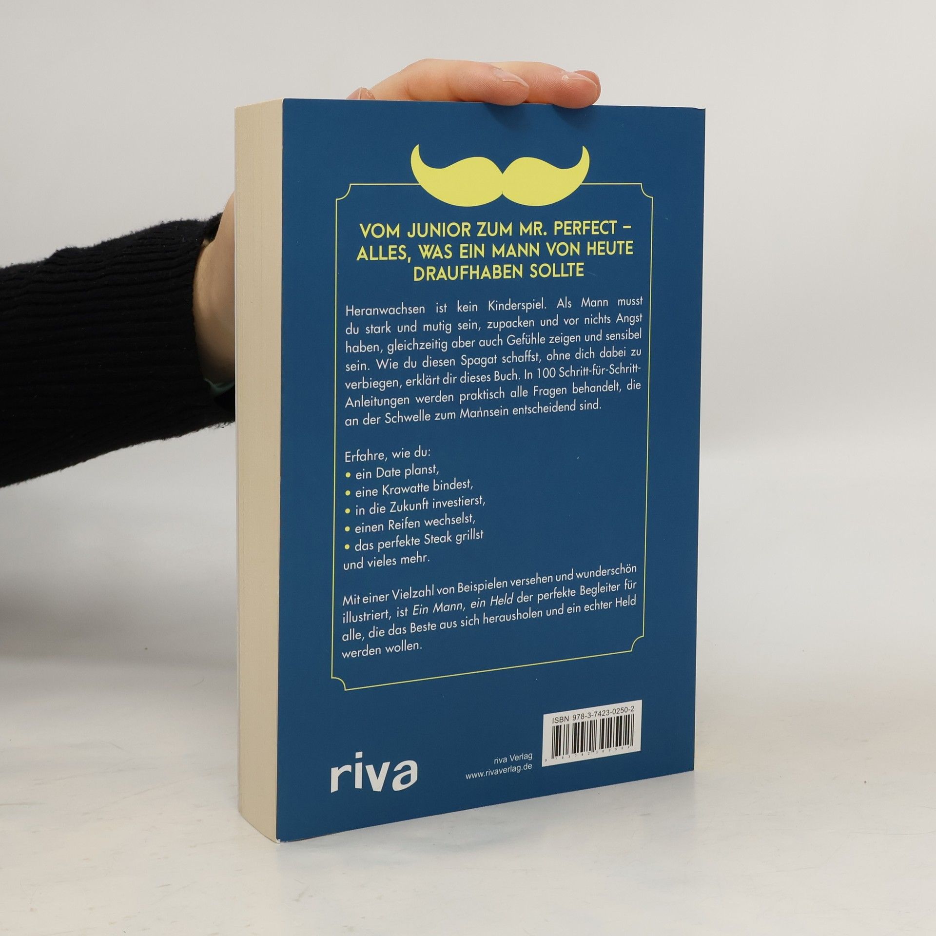 Vom Junior zum Mr. Perfect – alles, was ein Mann von heute draufhaben sollte Heranwachsen ist kein Kinderspiel. Als Mann musst du stark und mutig sein, zupacken und vor nichts Angst haben, gleichzeitig aber auch Gefühle zeigen und sensibel sein. Wie du diesen Spagat schaffst, ohne dich dabei zu verbiegen, erklärt dir dieses Buch. In 100 Schritt-für-Schritt-Anleitungen werden praktisch alle Fragen behandelt, die an der Schwelle zum Mannsein entscheidend sind. Erfahre, wie du: - ein Date planst, - eine Krawatte bindest, - in die Zukunft investierst, - einen Reifen wechselst, - das perfekte Steak grillst und vieles mehr. Mit einer Vielzahl von Beispielen versehen und wunderschön illustriert, ist Ein Mann, ein Held der perfekte Begleiter für alle, die das Beste aus sich herausholen und ein echter Held werden wollen.
