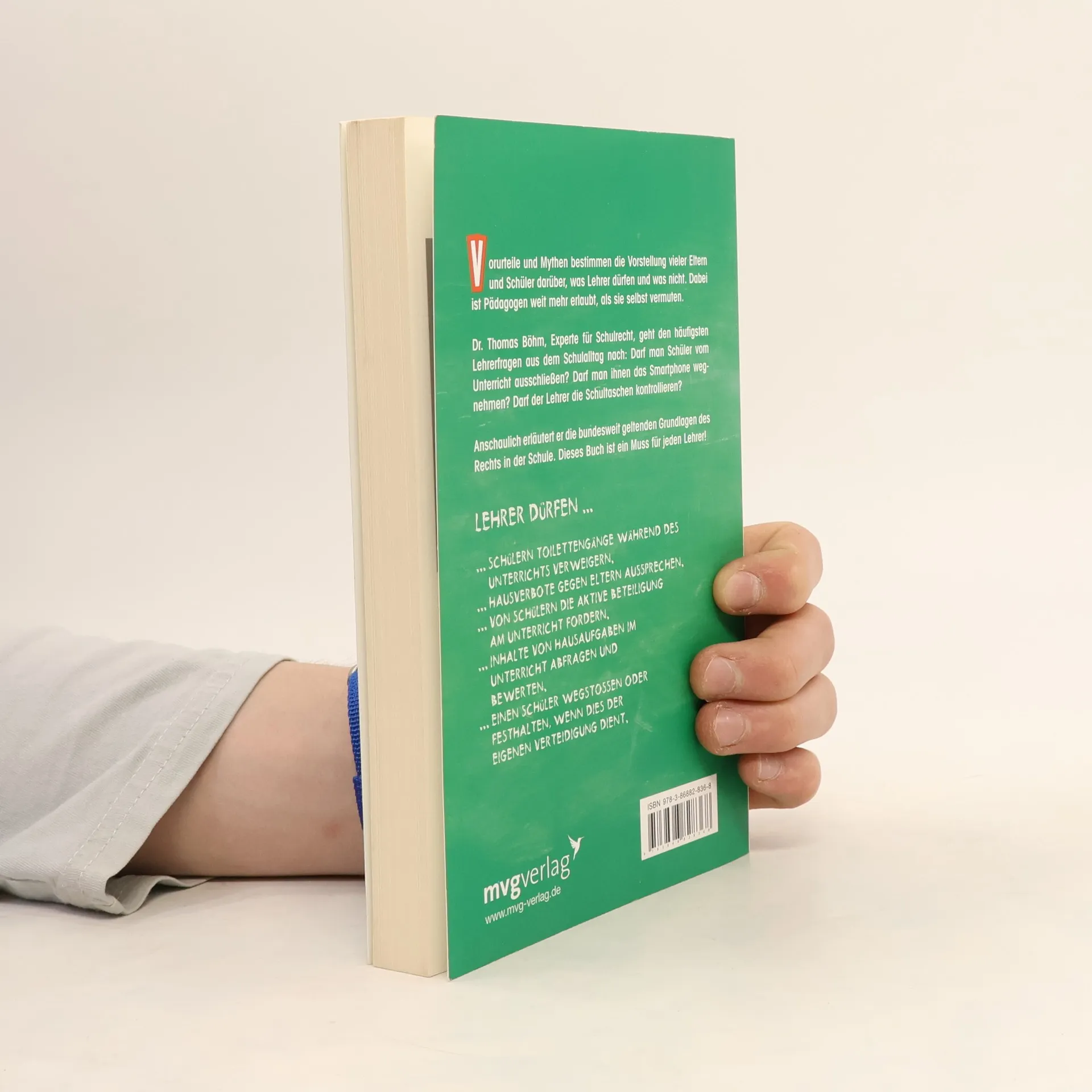 „Wer einen Schüler anfasst, steht mit einem Bein im Gefängnis.“ „Lehrer dürfen Schüler nicht anschreien.“ „Das Elternrecht steht über allem.“ Vorurteile und Mythen bestimmen die Vorstellung vieler Eltern und Schüler darüber, was Lehrer dürfen und was nicht. Dabei ist Pädagogen weit mehr erlaubt, als sie selbst vermuten. Dr. Thomas Böhm, Experte für Schulrecht, geht den häufigsten Lehrerfragen aus dem Schulalltag nach: Darf man Schüler vom Unterricht ausschließen? Darf man ihnen das Smartphone wegnehmen? Darf der Lehrer die Schultaschen kontrollieren? Anschaulich erläutert der Autor die von Gerichten entwickelten und die gesetzlich garantierten, bundesweit geltenden Grundlagen des Rechts in der Schule. Mit zahlreichen Beispielen und wichtigen Informationen zur Rechtslage ? rechtzeitig zum Start ins neue Schuljahr.