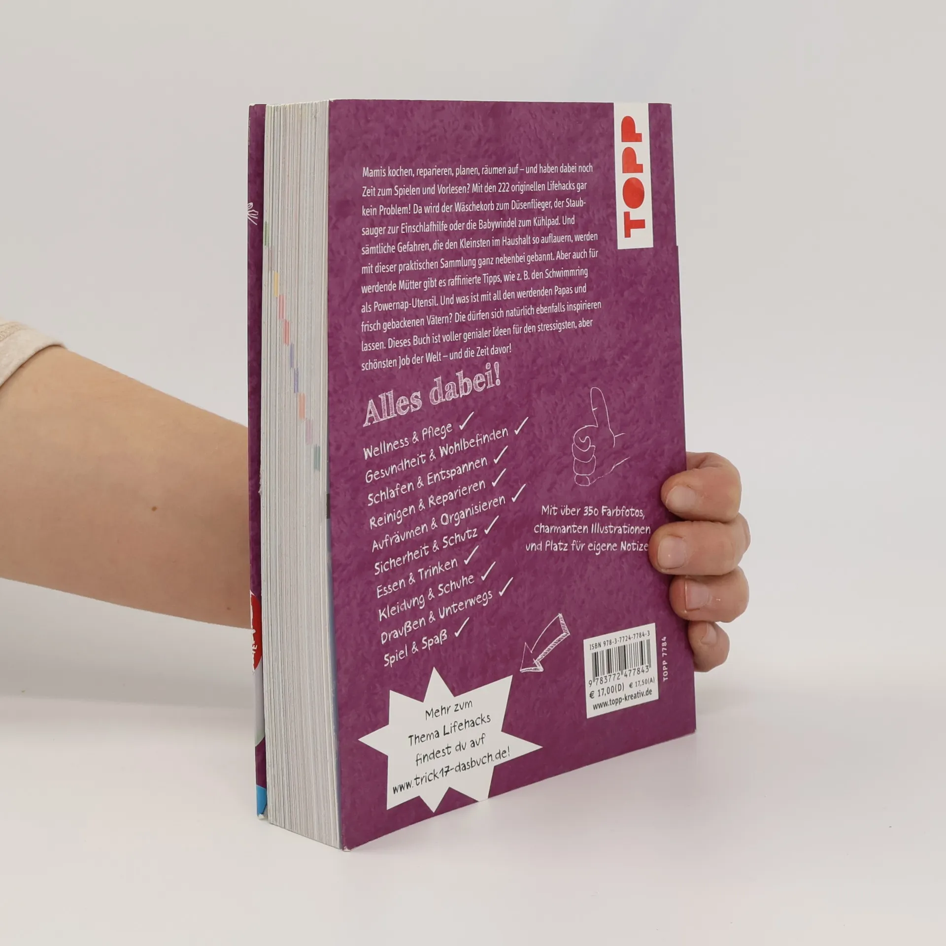 In der Schwangerschaft den Alltag bewältigen wie zuvor? Mit Baby alles Mögliche reparieren, kochen, aufräumen, waschen, den Alltag planen und organisieren und dabei auch noch Zeit zum Spielen und Vorlesen haben? Mit diesen 222 originellen Lifehacks für Schwangere und Mütter ist das alles kein Problem! Da wird der Wäschekorb zum Düsenflieger, der Schwimmring zum Powernap-Utensil, der Staubsauger zur Einschlafhilfe und die Babywindel zum Kühlpad. Und alle Gefahren, die den Kleinsten im Haushalt so auflauern, bannst du damit auch noch ganz nebenbei! Die praktische Sammlung mit zahlreichen Bildern ist ein wahrer Lebensretter für alle Schwangeren und Mütter kleiner Kinder und das ideale Geschenk. Und natürlich dürfen sich auch Papas von den Tipps und Tricks inspirieren lassen.