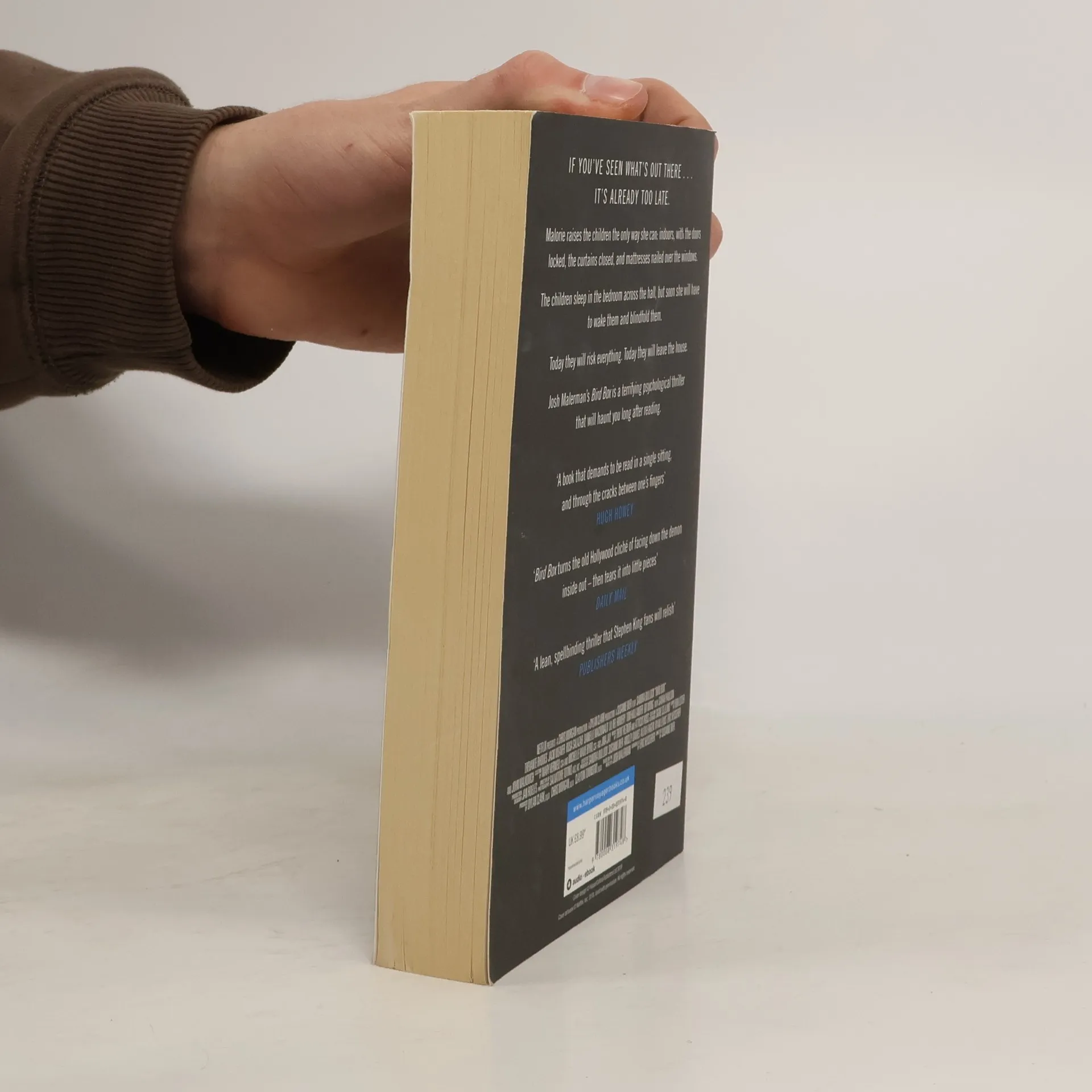Malorie raises the children the only way she can: indoors, with the doors locked, the curtains closed, and mattresses nailed over the windows.The children sleep in the bedroom across the hall, but soon she will have to wake them and blindfold them.Today they will risk everything. Today they will leave the house.Josh Malerman's Bird Box is a terrifying psychological thriller that will haunt you long after reading.