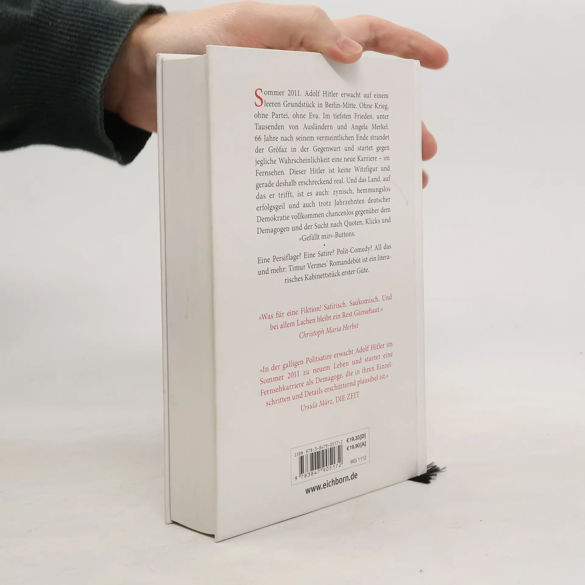 Sommer 2011. Adolf Hitler erwacht auf einem leeren Grundstück in Berlin-Mitte. Ohne Krieg, ohne Partei, ohne Eva. Im tiefsten Frieden, unter Tausenden von Ausländern und Angela Merkel. 66 Jahre nach seinem vermeintlichen Ende strandet der Gröfaz in der Gegenwart und startet gegen jegliche Wahrscheinlichkeit eine neue Karriere - im Fernsehen. Dieser Hitler ist keine Witzfigur und gerade deshalb erschreckend real. Und das Land, auf das er trifft, ist es auch: zynisch, hemmungslos erfolgsgeil und auch trotz Jahrzehnten deutscher Demokratie vollkommen chancenlos gegenüber dem Demagogen und der Sucht nach Quoten, Klicks und „Gefällt mir“-Buttons. Eine Persiflage? Eine Satire? Polit-Comedy? All das und mehr: Timur Vermes' Romandebüt ist ein literarisches Kabinettstück erster Güte.