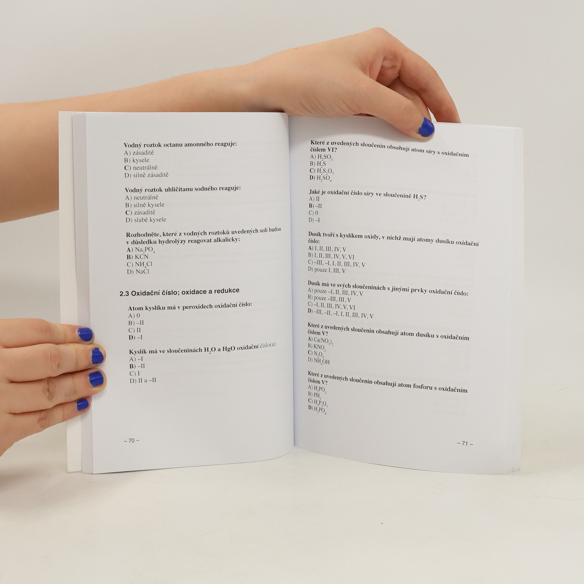 Soubor testových otázek z chemie, 7. vydání. Toto vydánívychází z předchozího, 6. upraveného vydání z roku 2014.Otázky budou zařazeny do přijímacího testu jak v nezměněném znění, tak mohou být i různě modifikoványpři zachování jejich obtížnosti.