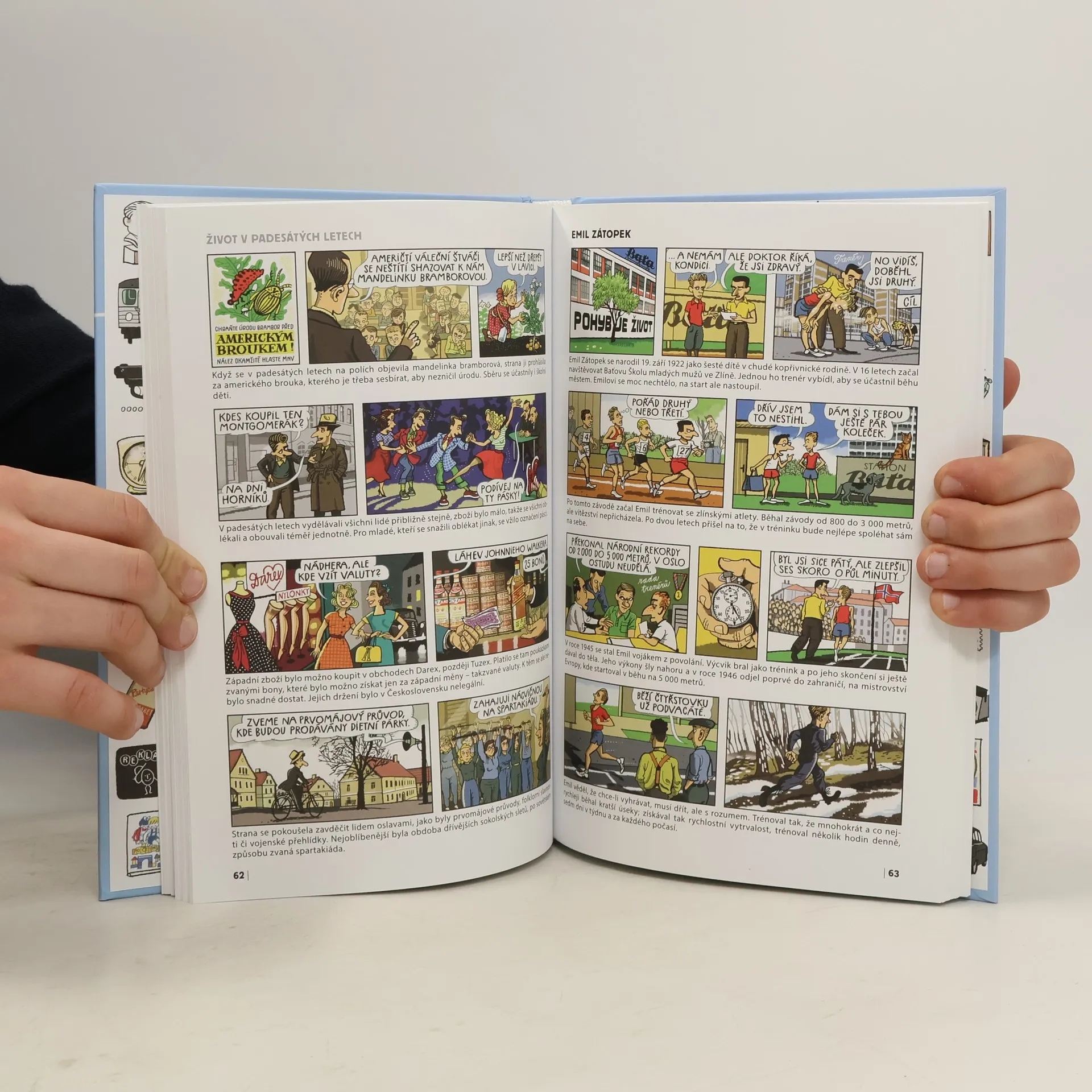 Víte, kdo poprvé vyslovil výraz železná opona? Patřilo Československo mezi první tři země, kde se začaly stavět domy z panelů? V kterých částech Prahy nastupovali lidé do stanic metra Fučíkova, Moskevská, Leninova? A podařilo se někomu překonat rekord Emila Zátopka z olympijských her v Helsinkách v roce 1952, na kterých vyhrál hned 3 zlaté medaile? Na tyto otázky a spoustu dalších najdete odpovědi v této výjimečné obrázkové publikaci. Bohatě ilustrovaný komiks provází dějinami poválečného Československa a érou totality ve všech jejích podobách. Přístupnou a srozumitelnou formou přivádí mladé čtenáře ke komplikované a proměnlivé době let 1945–1989 v Československu, která v mnohém předurčila i současný vývoj demokratické společnosti. Dospěláci zase zavzpomínají na svoje dětství a mládí.