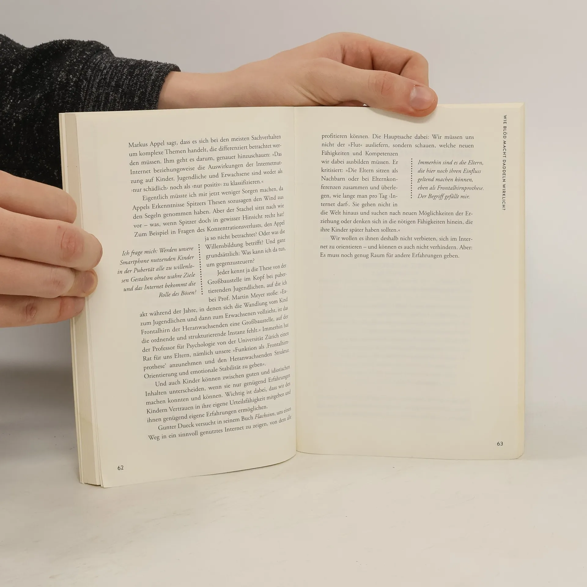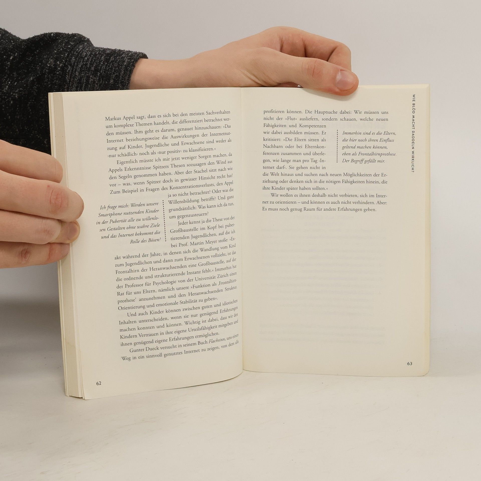 Expertentipps, Alltagserfahrungen und kreative Ideen für einen entspannten und verantwortungsvollen Start in die digitale Technikwelt. Das Buch vermittelt, wie Kinder einen verantwortungsvollen Umgang mit moderner Technik erlernen und ein Bewusstsein für die Chancen und Risiken der digitalen Welt entwickeln können. Es bietet unterhaltsame Einblicke, etwa warum ein Familienurlaub im Funkloch nicht ideal ist. Die aktuelle Debatte über die angemessene Bildschirmzeit für Kinder wird thematisiert. Eltern, deren Kinder zur Generation der „Digital Natives“ gehören, streben danach, ihre Nachkommen zu einem sorgsamen Umgang mit Technik zu erziehen. Sie wünschen sich, dass ihre Kinder im Internet recherchieren können, anstatt nur YouTube-Videos zu konsumieren, und dass Jugendliche gut auf die digitale Welt vorbereitet sind. Zwei Mütter mit insgesamt fünf technikbegeisterten Kindern stellen sich dieser Herausforderung in einem unterhaltsamen Selbstversuch. Sie testen verschiedene Expertentipps gegen die ständige Präsenz von Smartphones im Kinderzimmer und entwickeln eigene kreative Lösungen, von einem Urlaub im Funkloch bis hin zu technischen Maßnahmen wie WLAN-Sperren und dem Einsatz von Lieblingsessen als Belohnung. Ihre Erfahrungen teilen sie mit anderen Eltern, um diese auf die realen Herausforderungen der digitalen Welt vorzubereiten.