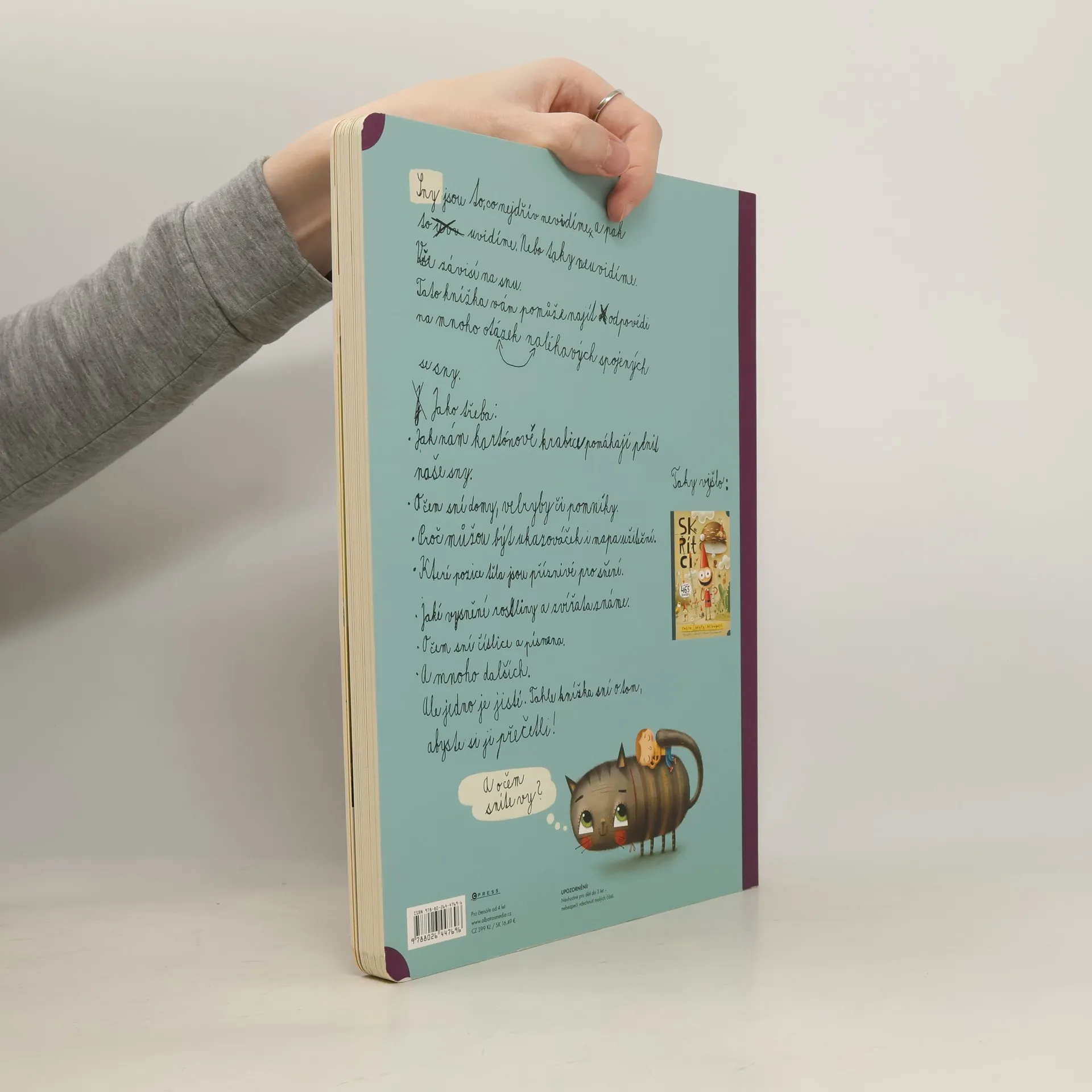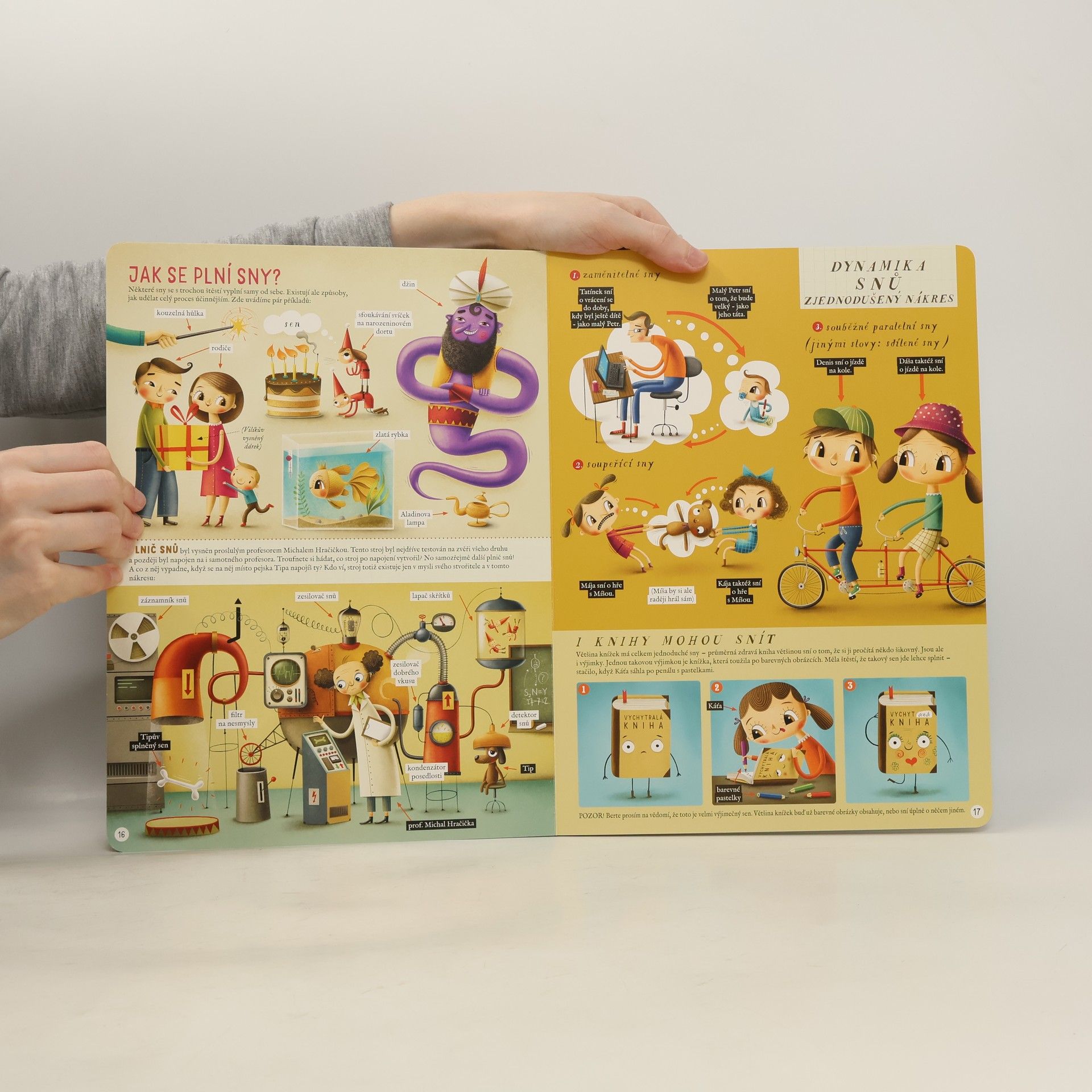 Úžasně barevný průvodce světem snů od autora hitu Skřítci.Odkud se berou sny? Jak s nimi souvisejí kartonové krabice? A o čem sní třeba čajová konvice? Na tyto a další podivuhodné otázky teď dostanete ještě podivuhodnější odpovědi. V roztomilých a neuvěřitelně propracovaných ilustracích najdete sny všeho druhu: malé, velké, praktické, bláznivé nebo třeba kuchyňské. Ponořte se do říše fantazie a zjistěte, po čem touží zvířata, lidé, rostliny i věci! Jedno je každopádně jasné: tahle kniha sní o tom, že ji budete číst pořád dokola.