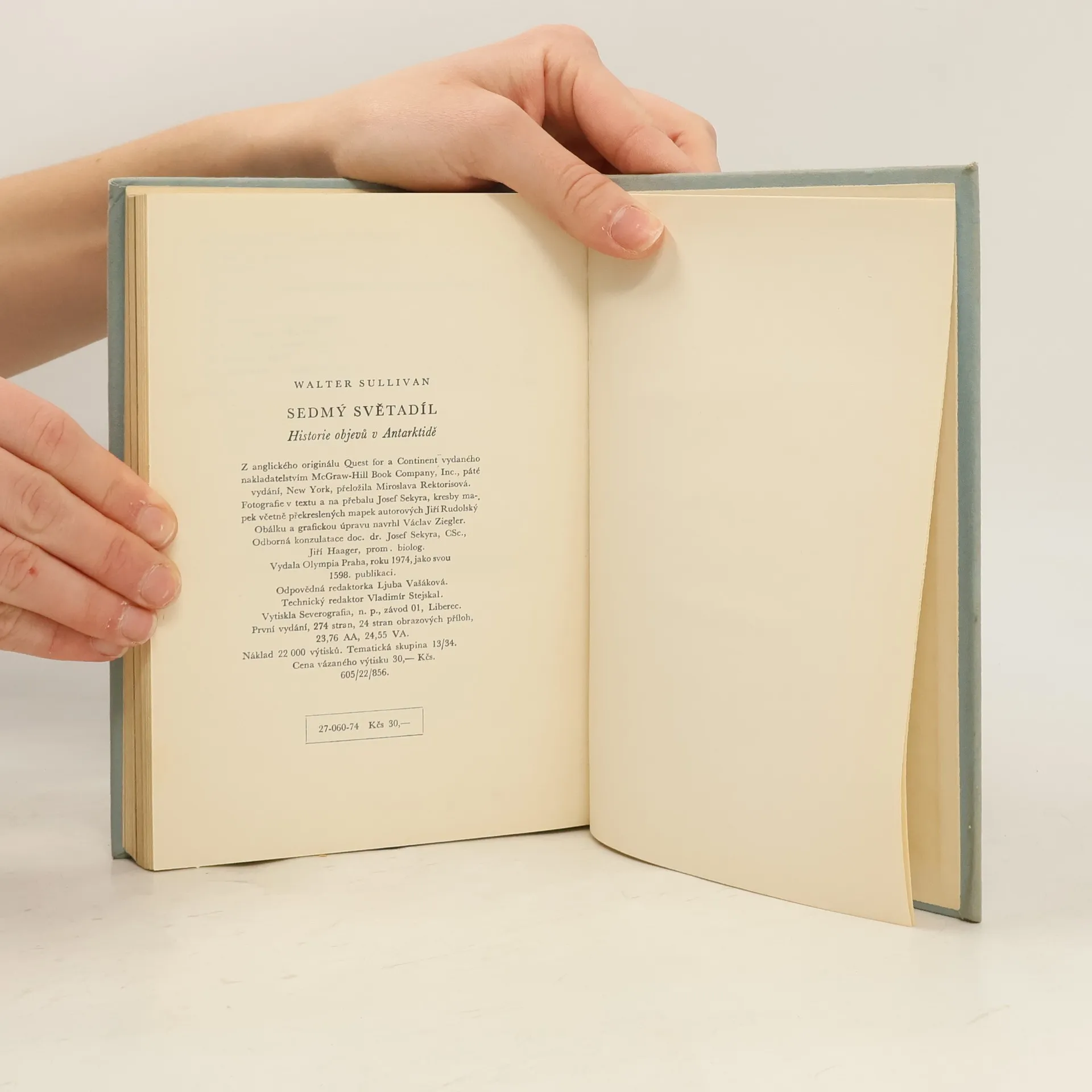 There are currently of book Sedmý světadíl. Historie objevů v Antarktidě (1974) in stock.