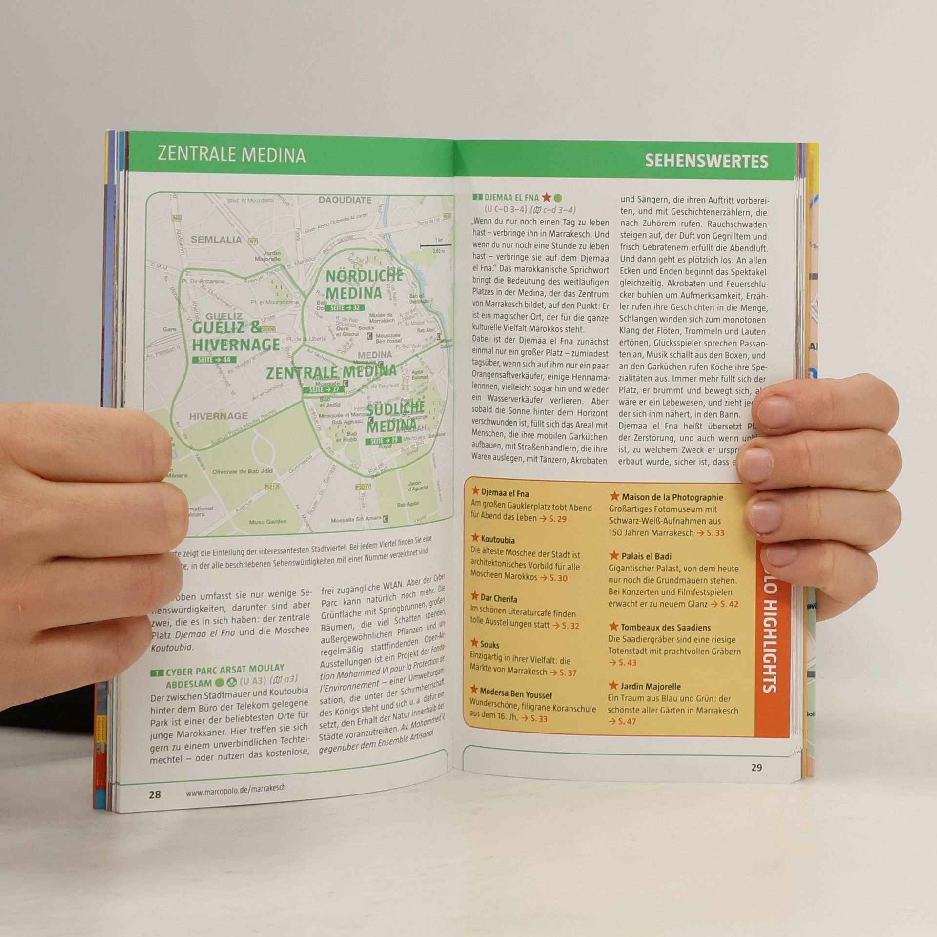 Kompakte Informationen, Insider-Tipps, Erlebnistouren und digitale Extras: Erleben Sie die marokkanische Trendmetropole intensiv vom Frühstück bis zum Nightcap. Mit diesem Reiseführer kommen Sie sofort in Marrakesch an und wissen garantiert, „wohin zuerst“. Entdecken Sie die Highlights neben dem Djemaa el Fna und den Souks, genießen Sie auf einer Dachterrasse mit Blick auf die Medina marokkanische Tapas, und finden Sie heraus, in welcher Szenebar der Marock ‘n‘ Roll am heißesten groovt. Erfahren Sie, wo Sie auf Flohmärkten günstig Teegeschirr erstehen können und in welchen Riads Ihr Traum aus 1001 Nacht Wirklichkeit wird. Die Insider-Tipps der Autorin ermöglichen Ihnen ein individuelles und authentisches Erlebnis, während die Low-Budget-Tipps Geld sparen. Erkunden Sie Marrakesch mit maßgeschneiderten Erlebnistouren, die für maximale Orientierung sorgen. Die kostenlose Touren-App führt Sie digital auf besonderen Wegen, ohne Roaminggebühren. Der Online-Update-Service informiert Sie über aktuelle Veranstaltungen (Ausstellungen, Konzerte, Festivals, Sportevents) und bietet zusätzliche Insider-Tipps. Jeder Band enthält einen übersichtlichen Cityatlas und eine herausnehmbare Faltkarte, auf der die Erlebnistouren verzeichnet sind.