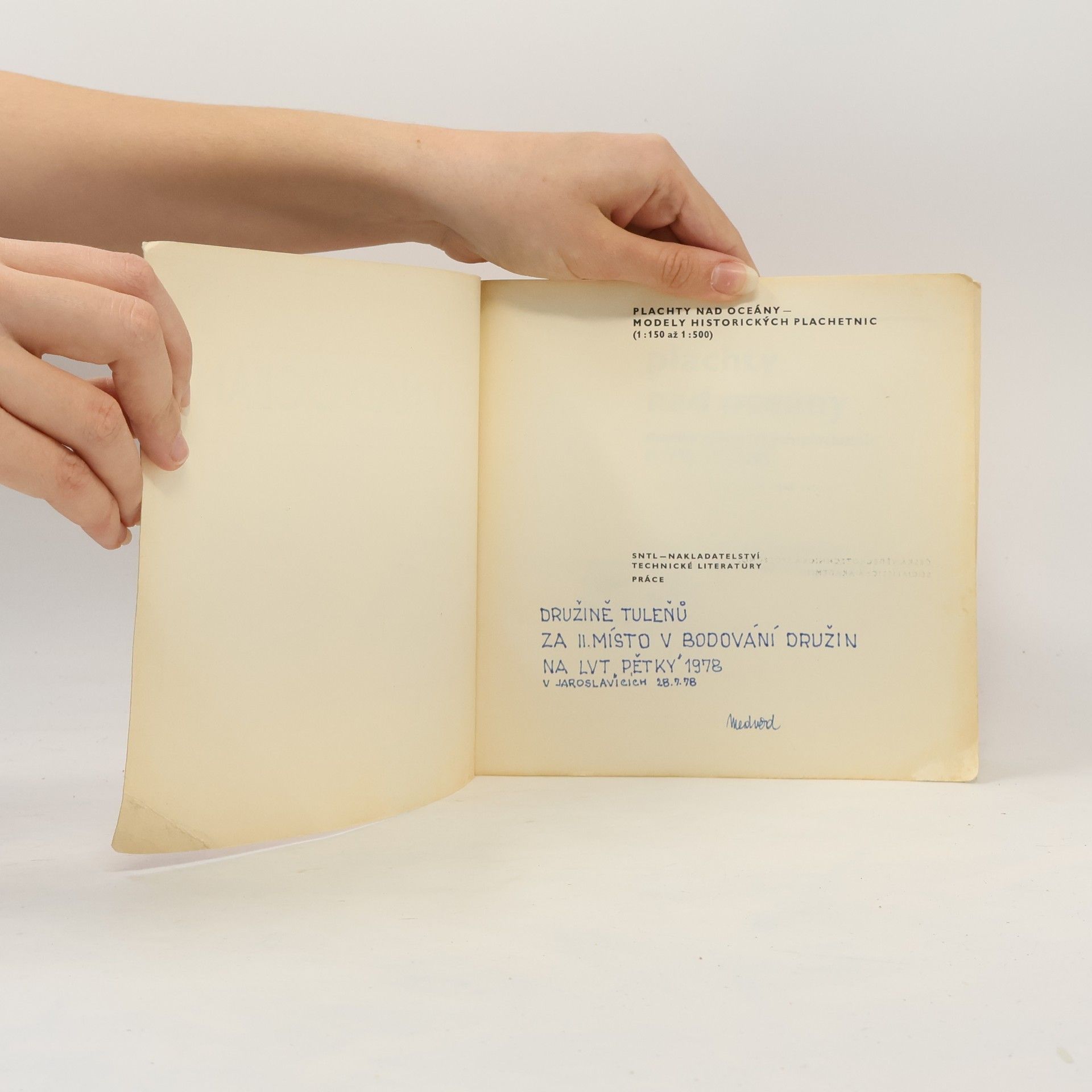Podtitul: Modely historických plachetnic (1:150 až 1:500). 2., přepracované a doplněné vydání. Po přehledu historického vývoje mořeplavby a plachetnic uvádí příručka náčrty plachetnic od 9. do 19. století a podává jejich základní charakteristiku. V další části pojednává o konstrukčních prvcích plachetních lodí a přináší instruktivní návody pro zhotovení historických modelů plachetnic a lodních děl. 164 stran, 317 obrázků, z toho 50 na vlepené křídové příloze a 3 vložené přílohy.