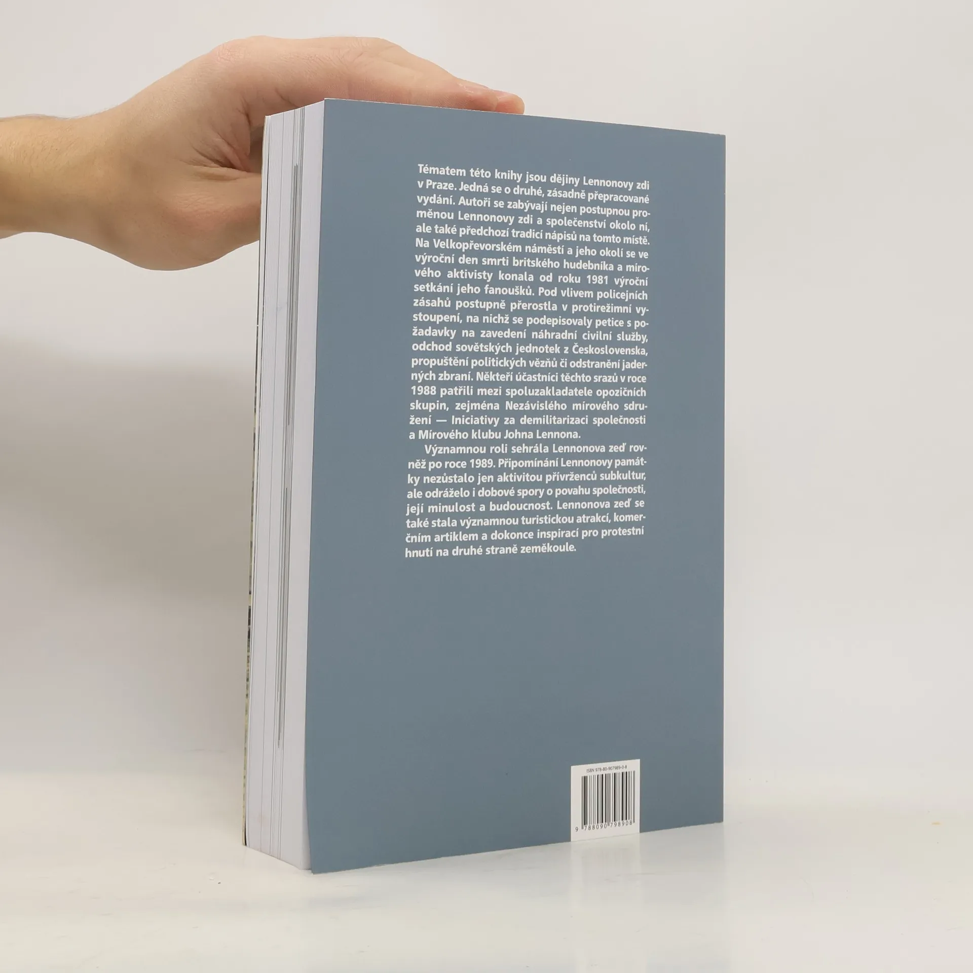 Tématem této knihy jsou dějiny Lennonovy zdi v Praze. Jedná se o druhé, zásadně přepracované vydání. Autoři se zabývají nejen postupnou proměnou Lennonovy zdi a společenství okolo ní, ale také předchozí tradicí nápisů na tomto místě. Na Velkopřevorském náměstí a jeho okolí se ve výroční den smrti britského hudebníka a mírového aktivisty konala od roku 1981 výroční setkání jeho fanoušků. Pod vlivem policejních zásahů postupně přerostla v protirežimní vystoupení, na nichž se podepisovaly petice s požadavky na zavedení náhradní civilní služby, odchod sovětských jednotek z Československa, propuštění politických vězňů či odstranění jaderných zbraní. Někteří účastníci těchto srazů patřili na konci osmdesátých let mezi spoluzakladatele opozičních skupin, zejména Nezávislého mírového sdružení – Iniciativy za demilitarizaci společnosti a Mírového klubu Johna Lennona. Významnou roli sehrála Lennonova zeď rovněž po roce 1989. Připomínání Lennonovy památky nezůstalo jen aktivitou přívrženců subkultur, ale odráželo i dobové spory o povahu společnosti, její minulost a budoucnost. Lennonova zeď se také stala významnou turistickou atrakcí, komerčním artiklem a dokonce inspirací pro protestní hnutí na druhé straně zeměkoule.