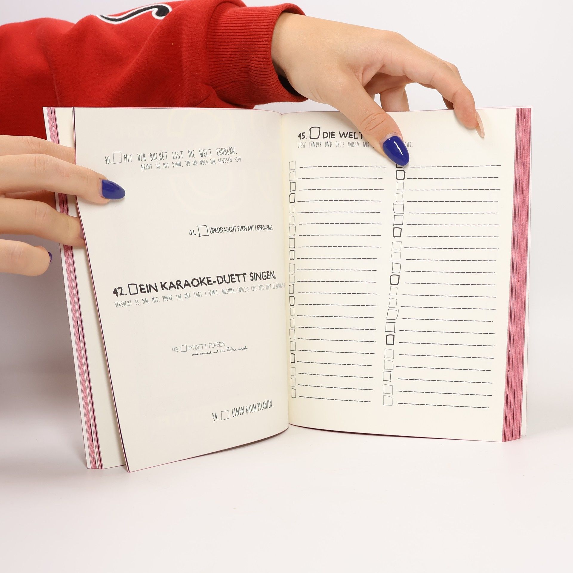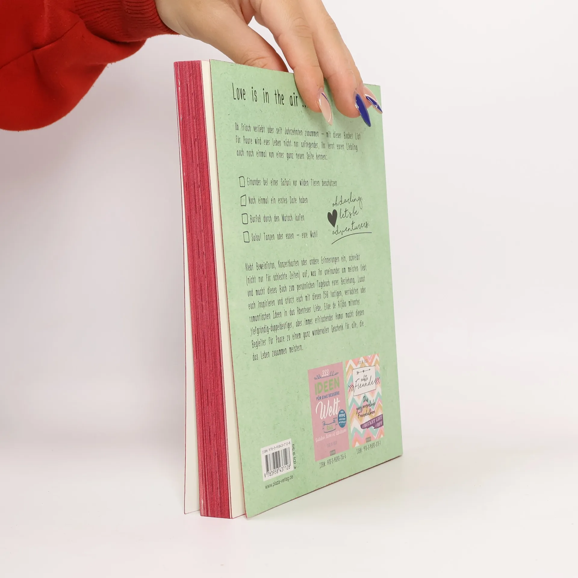 Spaghetti essen wie Susi und Strolch, nachts ans Meer fahren und gemeinsam die Sterne betrachten, Ihren Schatz bei einer Safari vor wilden Tieren beschützen -- ob frisch verliebt oder seit Jahrzehnten ein Paar, mit dieser Bucket List für Paare wird Ihr Leben nicht nur aufregender, Sie lernen Ihren Liebling auch noch einmal von einer ganz neuen Seite kennen. Schreiben Sie (nicht nur für schlechte Zeiten) auf, was Sie aneinander am meisten lieben und machen Sie dieses Buch zum persönlichen Tagebuch Ihrer Beziehung. Lassen Sie sich inspirieren und stürzen Sie sich mit diesen 250 lustigen, verrückten oder romantischen Ideen in das Abenteuer Liebe.