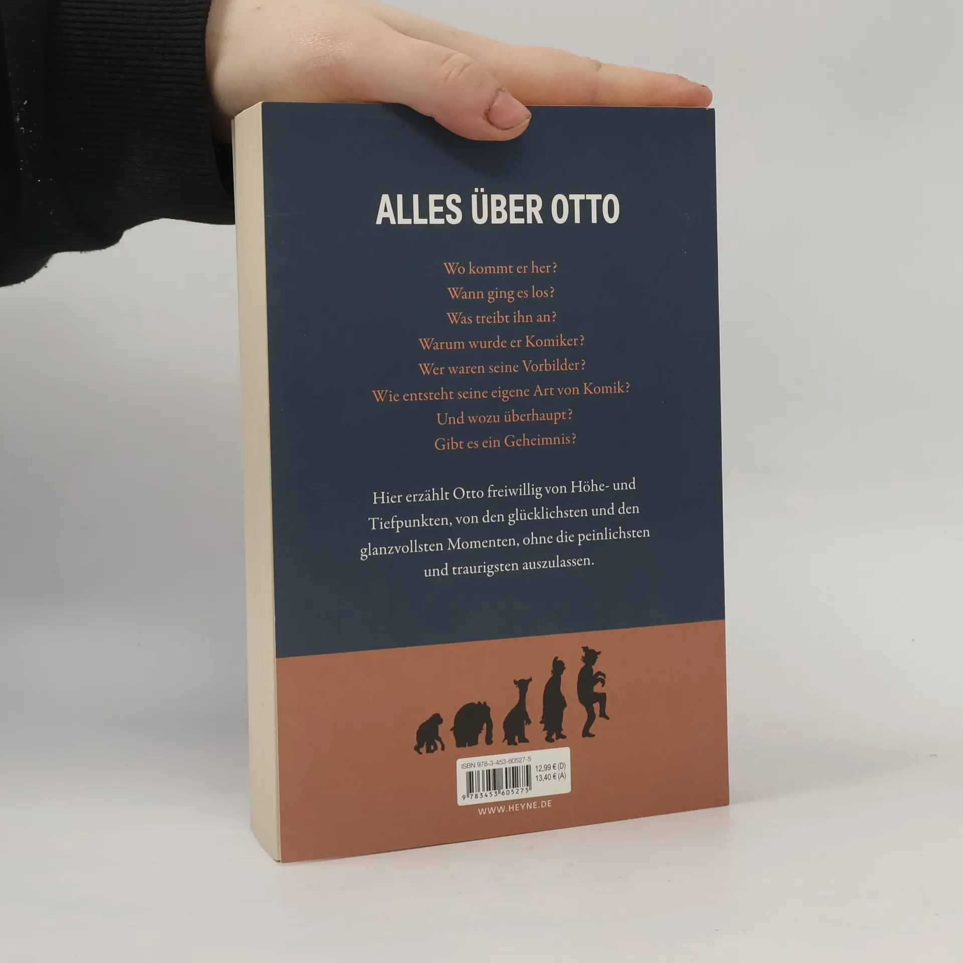 Darauf haben Generationen von Fans gerade noch gewartet: Otto erzählt aus den ersten 70 Jahren seines Lebens – einem märchenhaften Aufstieg vom Deichkind zum Alleinunterhalter der Nation. Seine Sketche und Figuren haben unser kollektives Gedächtnis und unseren Witzwortschatz bereichert: Harry Hirsch (übergibt sich ins Funkhaus), Robin Hood (der Stecher der Entnervten), Susi Sorglos (föhnt ihr goldenes Haar), Louis Flambée (kocht Pommes de Bordell), Peter, Paul and Mary (are planning a bank robbery) und der „Schniedelwutz“ (hat's bis in den Duden gebracht). Aber: Wer waren eigentlich Ottos Vorbilder? Wo kommt er her? Was treibt ihn an? Wie entsteht seine eigene Art von Komik? Und wozu überhaupt? Gibt es ein Geheimnis? Jetzt erzählt Otto freiwillig von Höhe- und Tiefpunkten, von den glücklichsten und den glanzvollsten Momenten, ohne die peinlichsten und traurigsten auszulassen. Nicht zu vergessen einige noch unveröffentlichte Fotos und selbstgemalte Bilder.