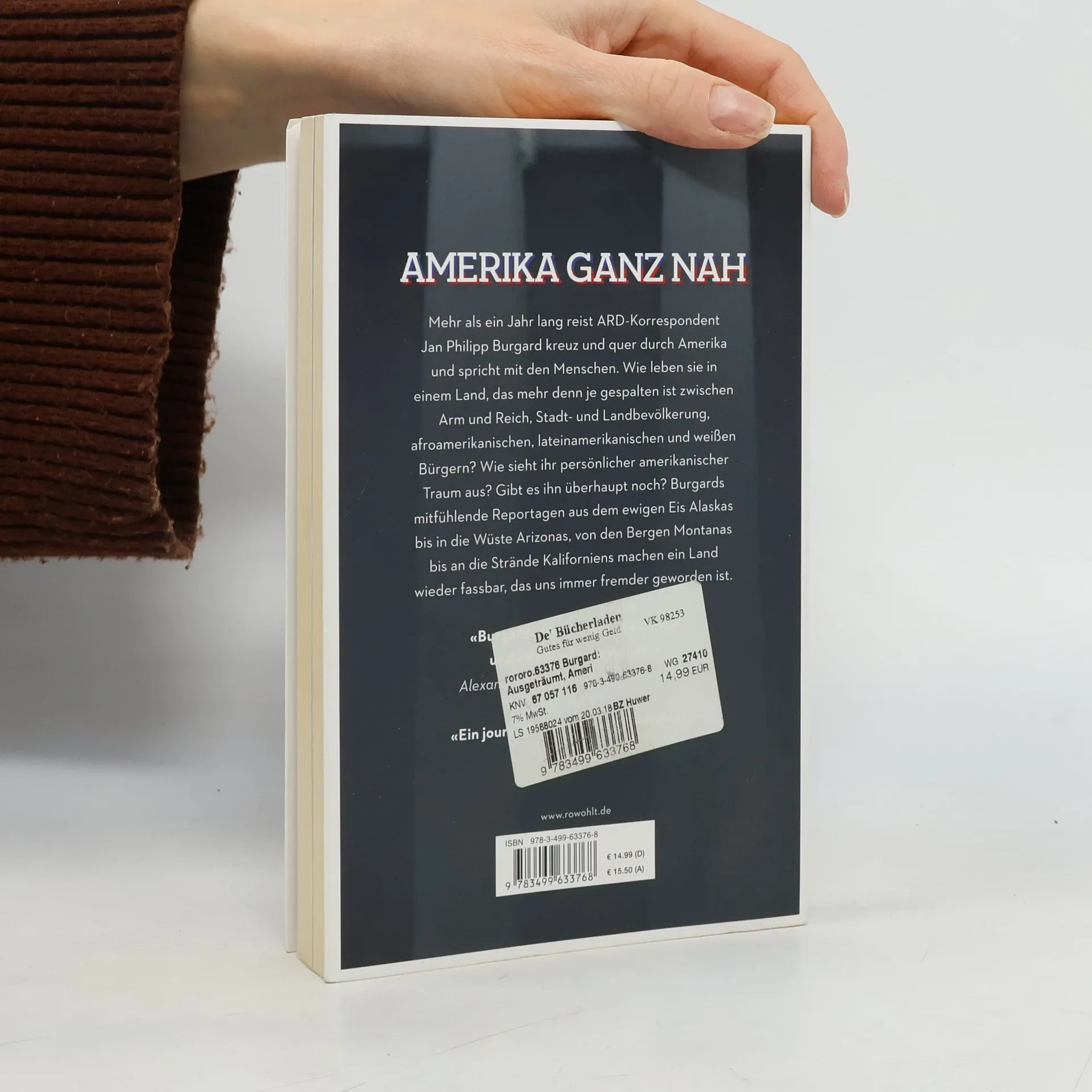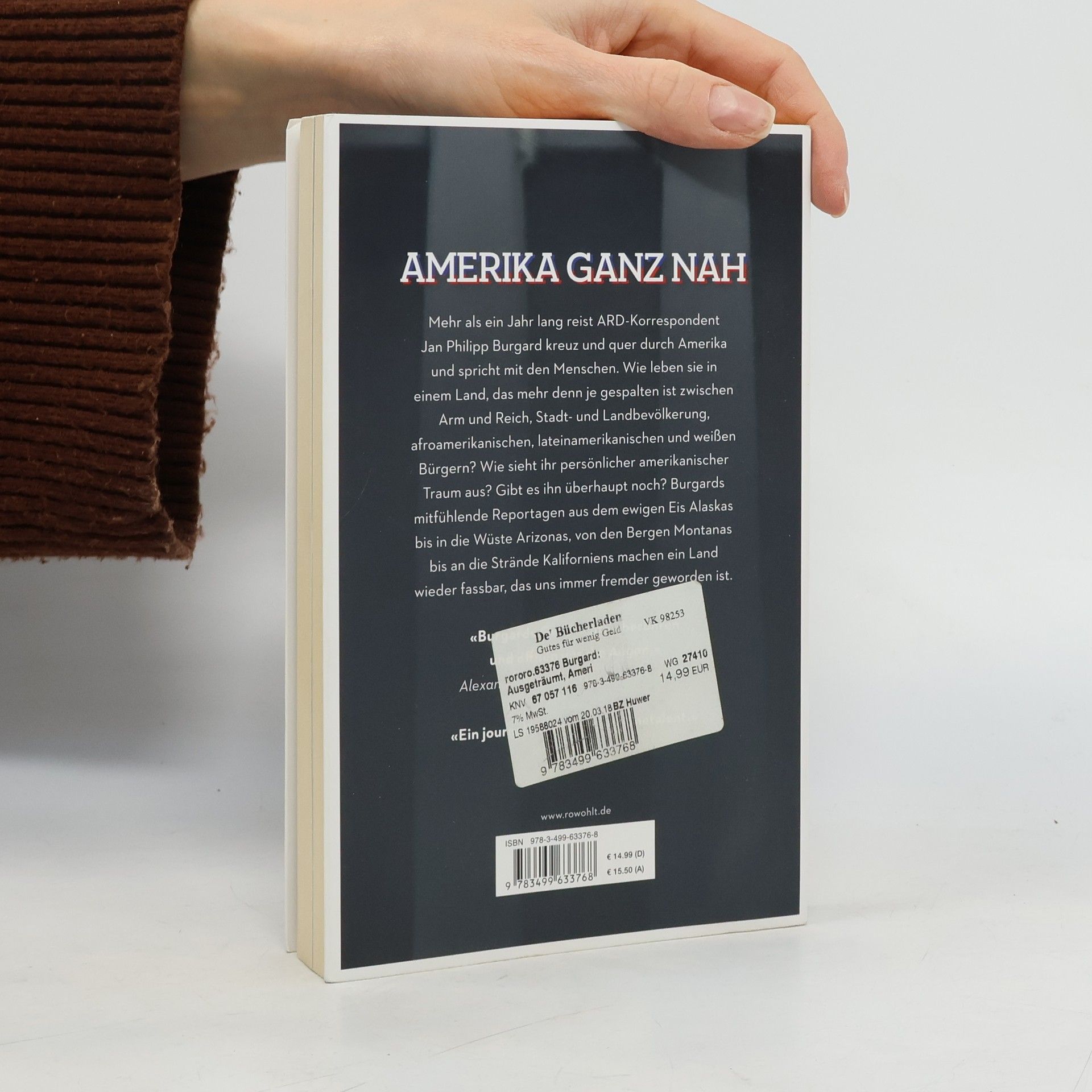 Mehr als ein Jahr lang reist ARD-Korrespondent Jan Philipp Burgard kreuz und quer durch Amerika und spricht mit den Menschen. Wie leben sie einem Land, das mehr denn je gespalten ist zwischen Arm und Reich, Stadt- und Landbevölkerung, afroamerikanischen, lateinamerikanischen und weißen Bürgern? Amerika ist ein Land voller Widersprüche. Es kämpft mit Herausforderungen wie Armut, Rassismus, Strukturwandel und Klimawandel. Die Zukunftsängste wachsen. Burgard will wissen, wie es den Menschen jenseits der politischen Klasse geht. Er hört sich um bei den Hillbillys in West Virginia, entlang der Route 66, in Las Vegas und in Silicon Valley. Er trifft Cowboy-Kids in Texas, einen Sheriff an der Grenze zu Mexiko, Arbeiter in Kentucky, Umweltaktivisten in Alaska, Politiker und Journalisten in Washington. Ist der amerikanische Traum ausgeträumt, oder gibt es ihn noch irgendwo? Burgards mitfühlende Reportagen aus dem ewigen Eis Alaskas bis in die Wüste Arizonas, von den Bergen Montanas bis an die Strände Kaliforniens machen ein Land wieder fassbar, das uns immer fremder geworden ist.