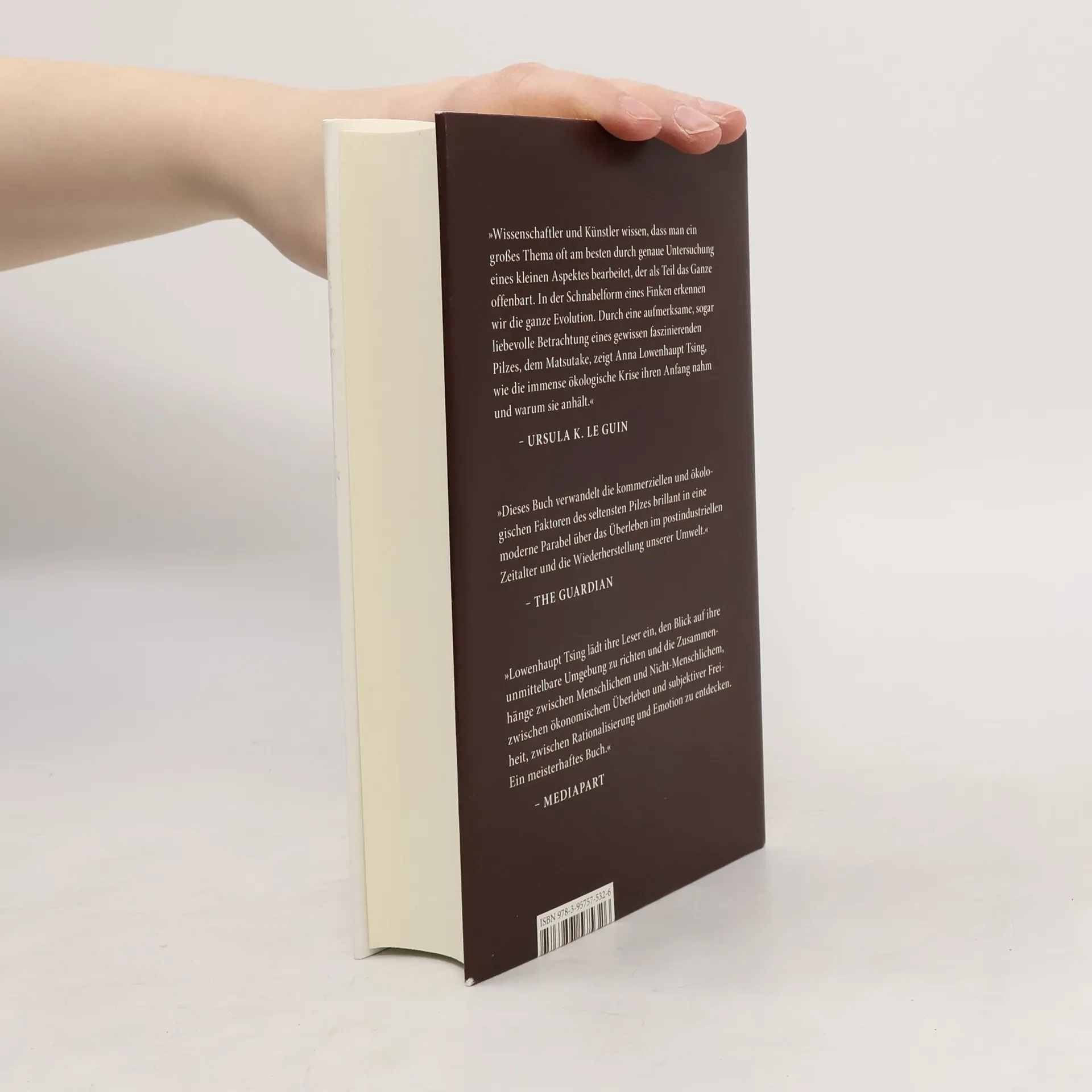 Das erste neue Leben, das sich nach der nuklearen Katastrophe in Hiroshima wieder regte, war ein Pilz. Ein Matsutake, der auf den verseuchten Trümmern der Stadt wuchs – einer der wertvollsten Speisepilze Asiens, der nicht nur in Japan, wo er Spitzenpreise aufruft, vorkommt, sondern auf der gesamten Nordhalbkugel verbreitet ist. Dieser stark riechende Pilz wächst bevorzugt auf von der Industrialisierung verwüsten und ruinierten Böden und ist nicht kultivierbar. In ihrem faszinierenden kaleidoskopischen Essay geht die Anthropologin Anna Lowenhaupt-Tsing den Spuren dieses Pilzes sowie seiner biologischen und kulturellen Verbreitung nach und begibt sich damit auch auf die Suche nach den Möglichkeiten von Leben in einer vom Menschen zerstörten Umwelt. Sie erzählt Geschichten von Pilzsammlern, Wissenschaftlern und Matsutake-Händlern und öffnet einen neuen und ungewohnten Blick auf unsere kapitalistische Gegenwart. Denn eigentlicher Gegenstand ihrer preisgekrönten und in viele Sprachen übersetzten Erzählung ist die Ökologie des Matsutake, das Beziehungsgeflecht um den Pilz herum, als pars pro toto des Lebens auf den Ruinen des Kapitalismus, das ein Leben in Beziehungen sein – oder aber nicht sein wird.