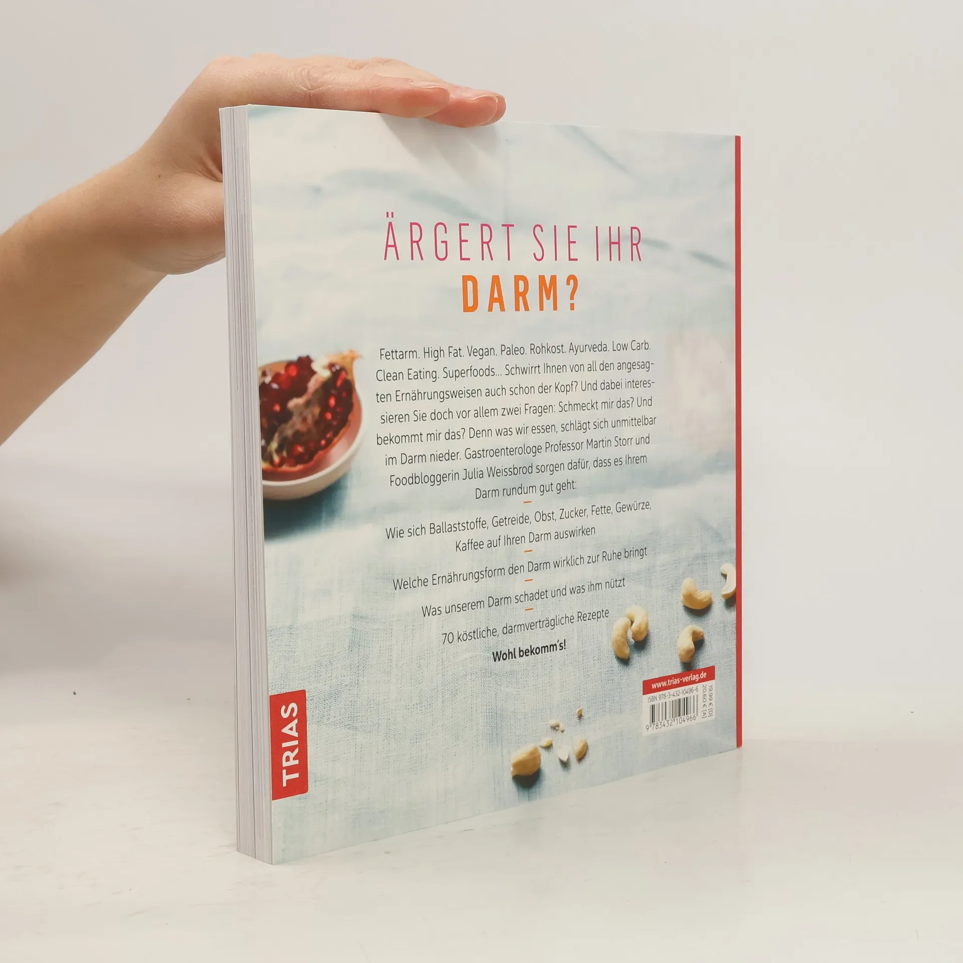Ärgert Sie Ihr Darm? Fettarm. High Fat. Vegan. Paleo. Rohkost. Ayurveda. Low Carb. Clean Eating. Superfoods.. Schwirrt Ihnen von all den angesagten Ernährungsweisen auch schon der Kopf? Und dabei interessieren Sie doch v. a. zwei Fragen: Schmeckt mir das? Und bekommt mir das? Denn was wir essen, schlägt sich unmittelbar im Darm nieder. Gastroenterologe Professor Martin Storr und Foodbloggerin Julia Weissbrod sorgen dafür, dass es Ihrem Darm rundum gut geht: Wie sich Ballaststoffe, Getreide, Obst, Zucker, Fette, Gewürze, Kaffee auf Ihren Darm auswirken. Welche Ernährungsform den Darm wirklich zur Ruhe bringt. Was unserem Darm schadet und was ihm nützt. 70 köstliche, darmverträgliche Rezepte. Wohl bekomm’s!