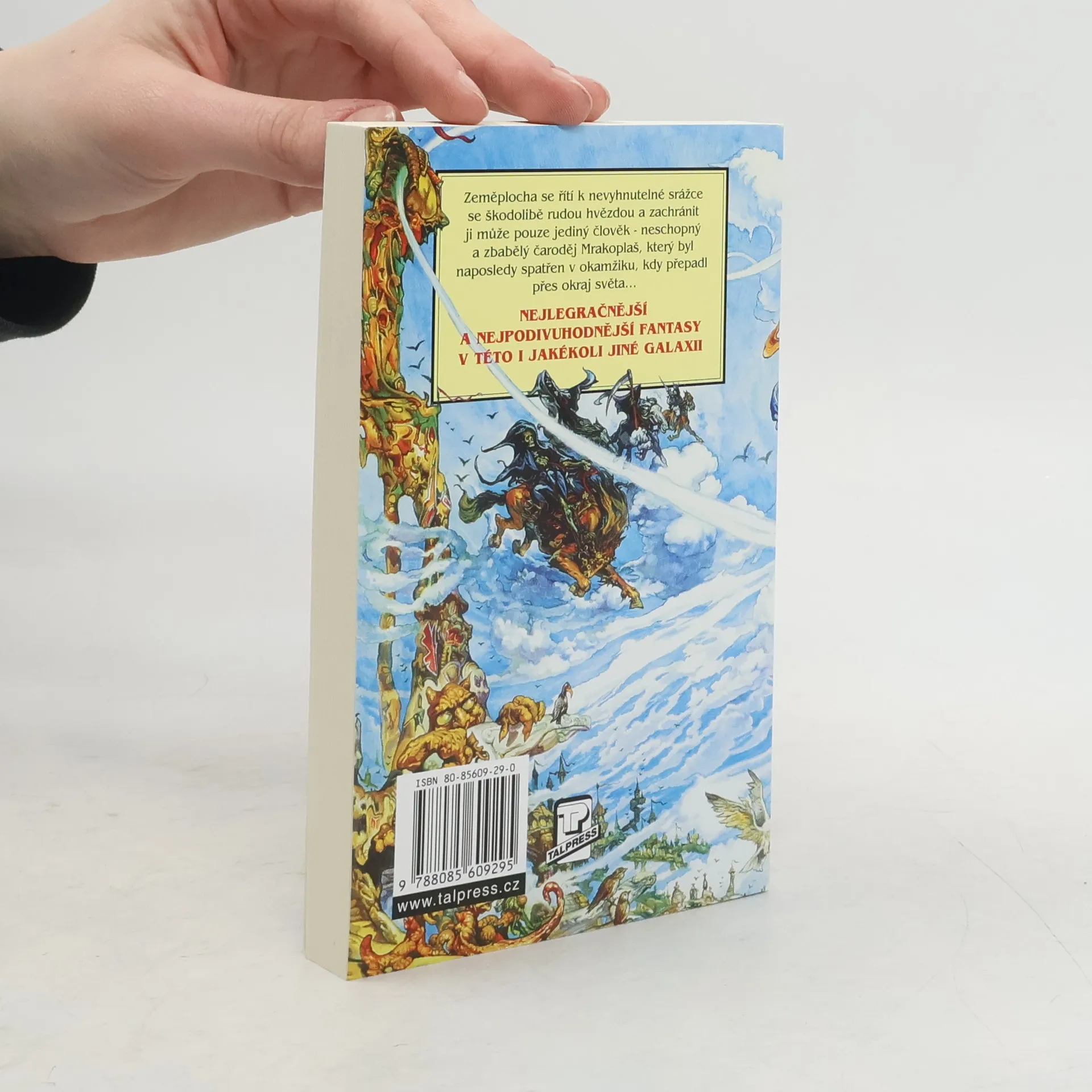 Zeměplocha se řítí k nevyhnutelné srážce se škodolibou rudou hvězdou a zachránit ji může pouze jediný člověk – neschopný a zbabělý čaroděj Mrakoplaš, který byl naposledy spatřen v okamžiku, kdy přepadl přes okraj světa... Nejlegračnější a nejpodivuhodnější fantasy v této i jakékoli jiné galaxii!!!