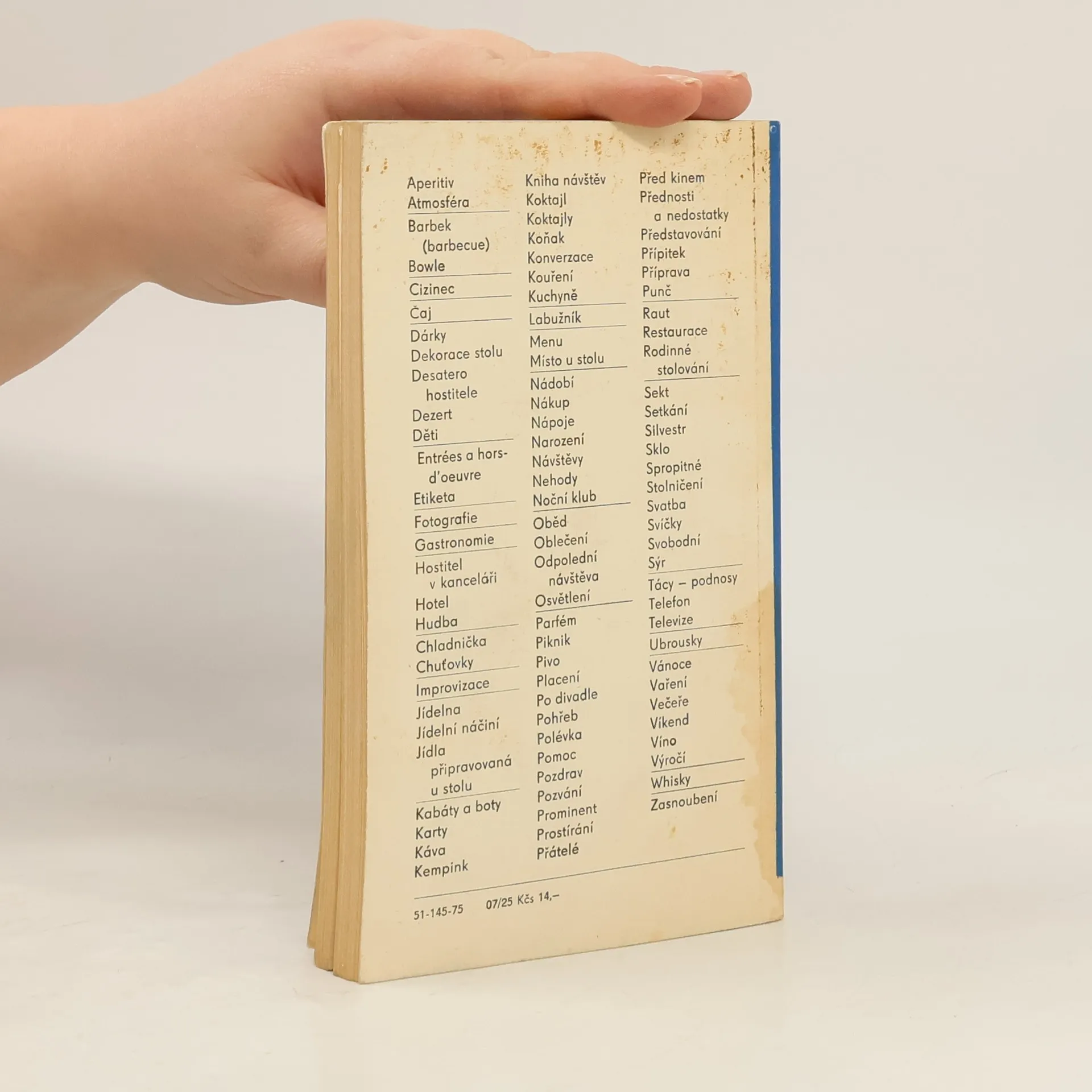 Kniha v několika heslech radí, jak se vypořádat s nejrůznějšími situacemi, které mohou čtenáře v roli hostitele potkat. Mnohé kapitoly jsou doplněny i recepty, jak na pokrmy, tak nápoje. Mnoho pravidel je platných i dnes, ale některé rady a doporučení nejspíše vyloudí na tváři úsměv.
