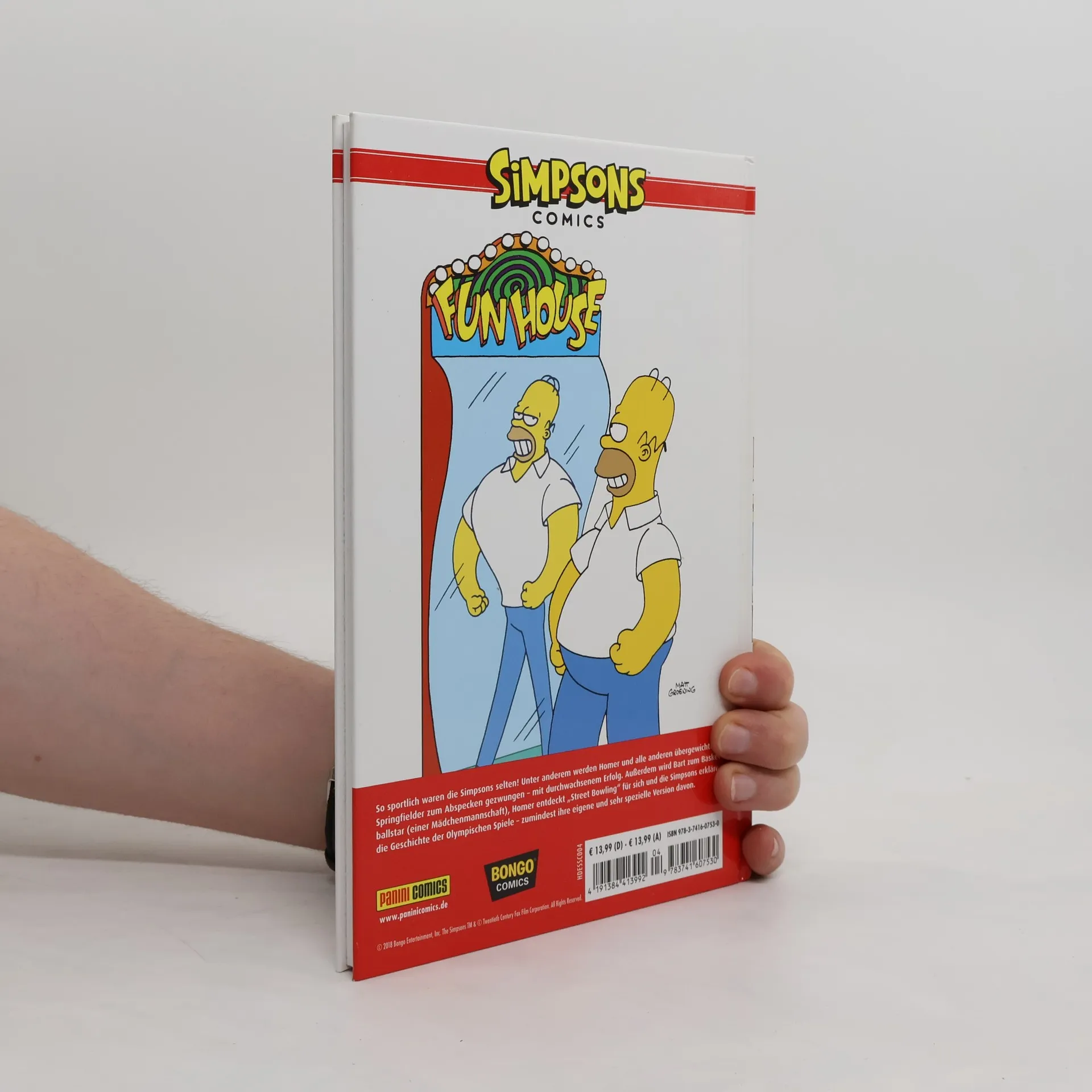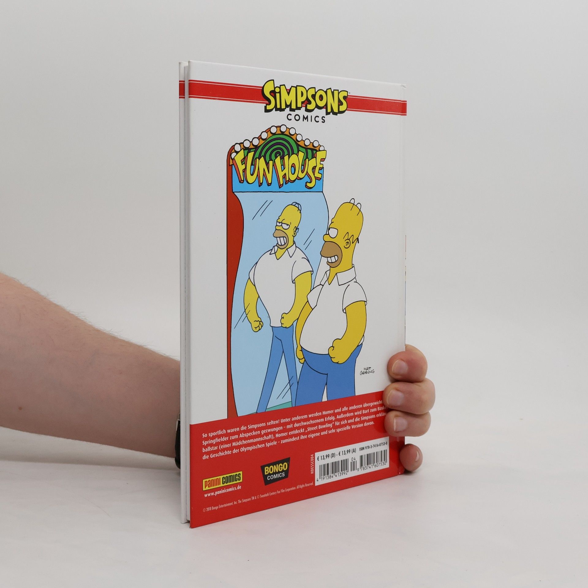So sportlich waren die Simpsons selten! Unter anderem werden Homer und alle anderen über gewichtigen Springfielder zum Abspecken gezwungen – mit durchwachsenem Erfolg. Außerdem Bart wird zum Basketballstar (einer Mädchenmannschaft), Homer entdeckt „Street Bowling“ für sich und die Simpsons erklären die Geschichte der Olympischen Spiele – zumindest ihre eigene und sehr spezielle Version davon. Diese außergewöhnliche Comic-Kollektion präsentiert zum ersten Mal die besten Storys rund um die Simpsons kompakt im edlen Hardcoverformat. Freuen Sie sich auf eine grandiose Sammlung urkomischer Geschichten rund um Matt Groenings gelbe und weltweit beliebte Kultfamilie Simpson mit Homer, Marge, Bart, Lisa, Maggie und natürlich all ihren Freunden, Nachbarn, Widersachern und Mitbewohnern aus Springfield.