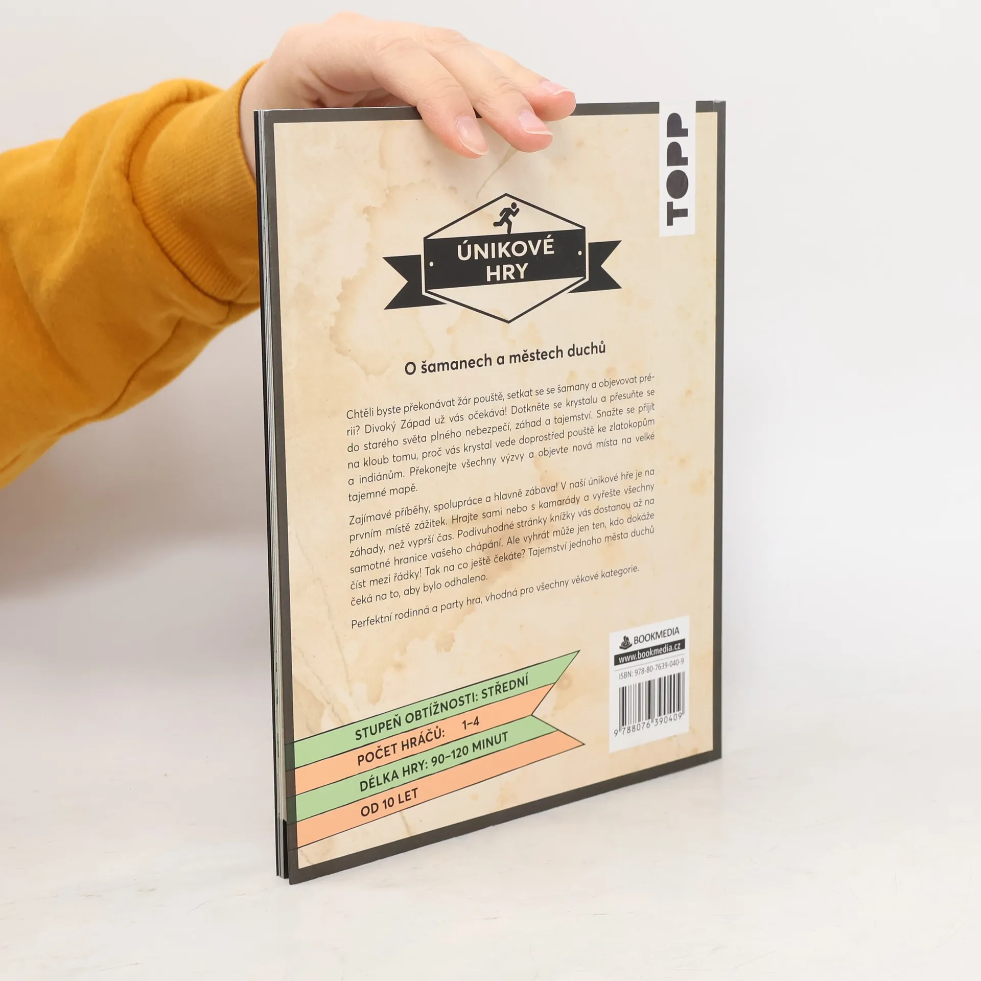 Příběh plný hádanek a tajemství by měl být vyprávěn vzrušujícím způsobem. V této herní knize se vrátíte zpátky do minulosti, do dob zlaté horečky, kolonizátorů a indiánů a budete mít za úkol zachránit svět. Zvládnete to navíc ještě v časovém limitu? Tato kniha obsahuje dechberoucí příběh, zábavné hádanky a mapu, která vás vnese hlouběji do hry. Samotná kniha se také stane součástí hry, ale o ní není třeba říkat příliš mnoho. Cestou vás může provázet tematický soundtrack. Zahrajte si s rodinou nebo přáteli a zažijte velmi speciální herní večer vhodný pro všechny věkové kategorie.