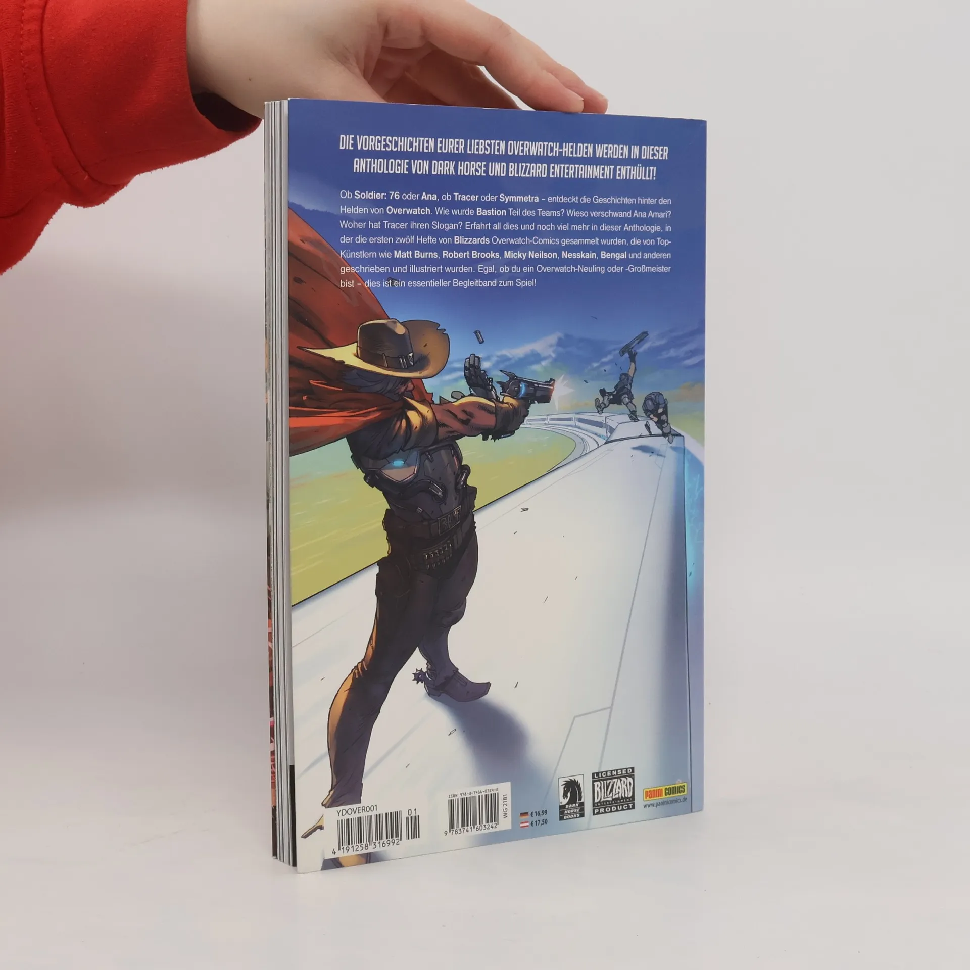 DIE VORGESCHICHTEN EURER LIEBSTEN OVERWATCH-HELDEN WERDEN IN DIESER ANTHOLOGIE VON DARK HORSE UND BLIZZARD ENTERTAINMENT ENTHÜLLT! Ob Soldier: 76 oder Ana, ob Tracer oder Symmetra – entdeckt die Geschichten hinter den Helden von Overwatch. Wie wurde Bastion Teil des Teams? Wieso verschwand Ana Amari? Woher hat Tracer ihren Slogan? Erfahrt all dies und noch viel mehr in dieser Hardcover- Anthologie, in der die ersten zwölf Hefte von Blizzards Overwatch-Comics gesammelt wurden, die von Top-Künstlern wie Matt Burns, Robert Brooks, Micky Neilson, Nesskain, Bengal und anderen geschrieben und illustriert wurden. Egal, ob du ein Overwatch-Neuling oder -Großmeister bist – dies ist ein essentieller Begleitband zum Spiel!