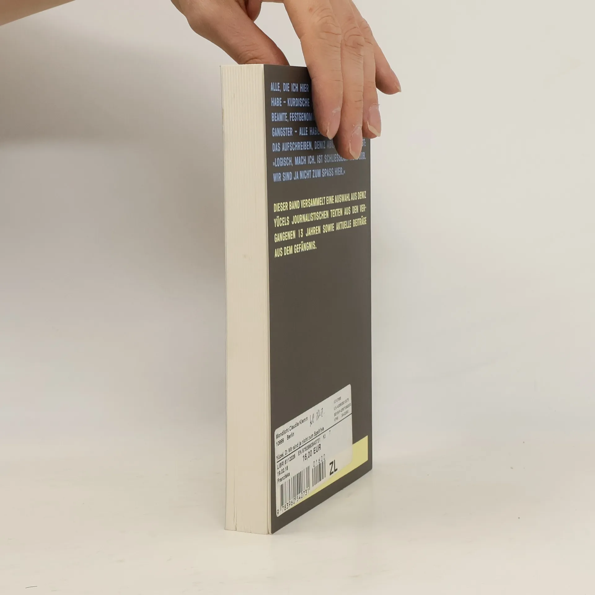 Im Februar 2017 schreibt Deniz Yücel aus dem Polizeigewahrsam in Istanbul: „Dieser Ort hat keine Erinnerung.“ Während seiner einjährigen Haftzeit hat er, unterstützt von seiner Journalistin-Kollegin Doris Akrap, eine Auswahl seiner Texte aus den letzten 13 Jahren zusammengestellt. Diese Sammlung umfasst Reportagen, Satiren, Polemiken, Kommentare und andere „Gebrauchstexte aus dem Handgemenge“. Ergänzt werden sie durch zwei neue Stücke, die Yücel im Hochsicherheitsgefängnis Silivri Nr. 9 verfasst hat, sowie einen Beitrag seiner Frau, Dilek Mayatürk Yücel. Yücel thematisiert unter anderem Journalismus, Migration und die Türkei. Sein Stil verbindet bissige Gesellschaftskritik mit klaren Analysen. Er beleuchtet Themen wie „Scheißefinden und Besserwissen“ im Journalismus, „Mathe für Ausländer“ im Kontext von Migration und „Biokoks und Surenbingo“ in der Gesellschaft. Seine Beiträge sind tiefgründig, persönlich und einfühlsam, ohne überflüssige Ausschweifungen. Günter Wallraff beschreibt die Texte als großen Journalismus, der sowohl informativ als auch bewegend ist.