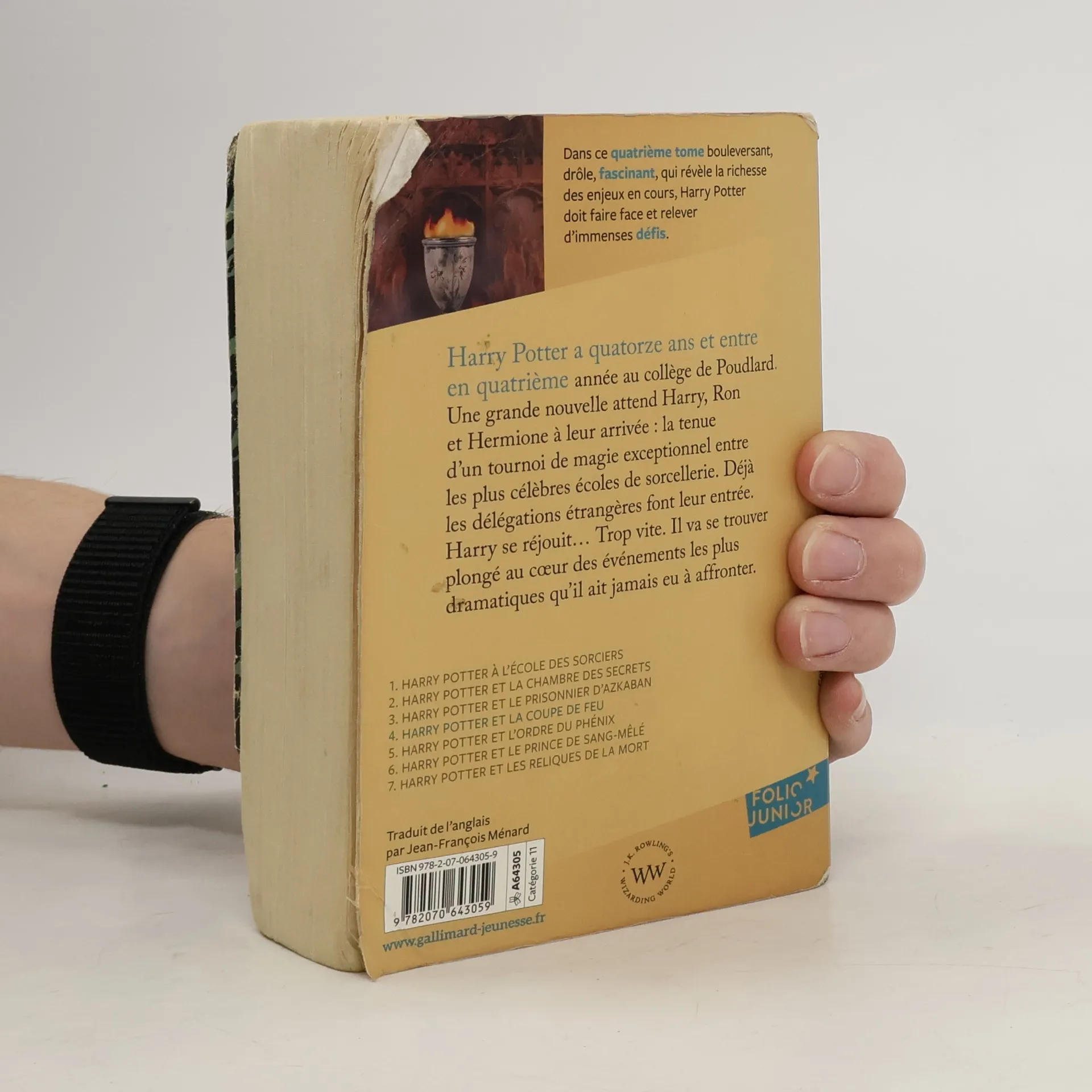 Harry Potter a quatorze ans et entre en quatrième année au collège de Poudlard. Une grande nouvelle attend Harry, Ron et Hermione à leur arrivée : la tenue d'un tournoi de magie exceptionnel entre les plus célèbres écoles de sorcellerie. Déjà les délégations étrangères font leur entrée. Harry se réjouit... Trop vite. Il va se trouver plongé au cœur des évènements les plus dramatiques qu'il ait jamais eu à affronter. --back cover