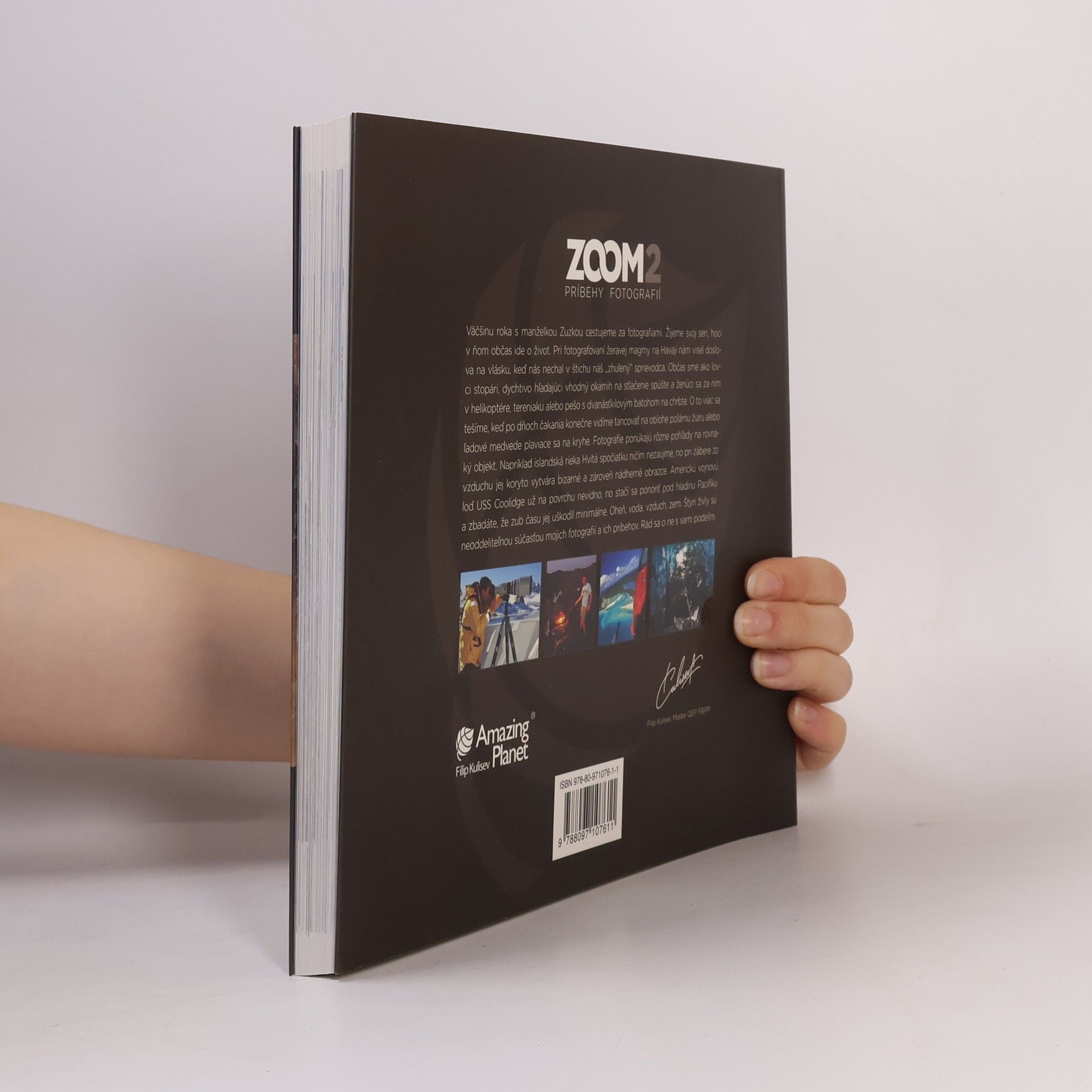 Speleologická výprava do ľadovcovej jaskyne na Islande, lietanie v helikoptére bez dverí nad najbelšou plážou na svete, kľučkovanie medzi prúdmi stovky stupňov horúcej magmy, naháňanie polárnej žiary v Nórsku, či kúpanie sa v zamŕzajúcom mori na Antarktíde. Aj toto zažil Filip Kulisev počas ciest za fotografiami, ktoré ukazujú krásy našej planéty. V pokračovaní úspešnej knihy ZOOM dá opäť nahliadnuť do zákulisia svojej práce. ZOOM 2 potvrdzuje, že každá fotografia má vlastný a jedinečný príbeh.