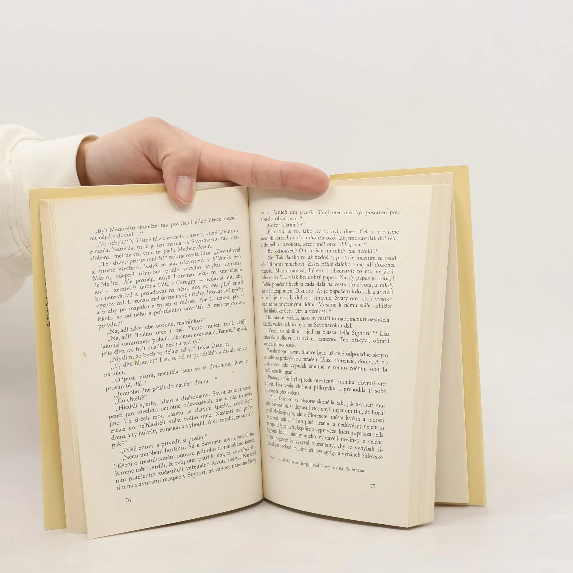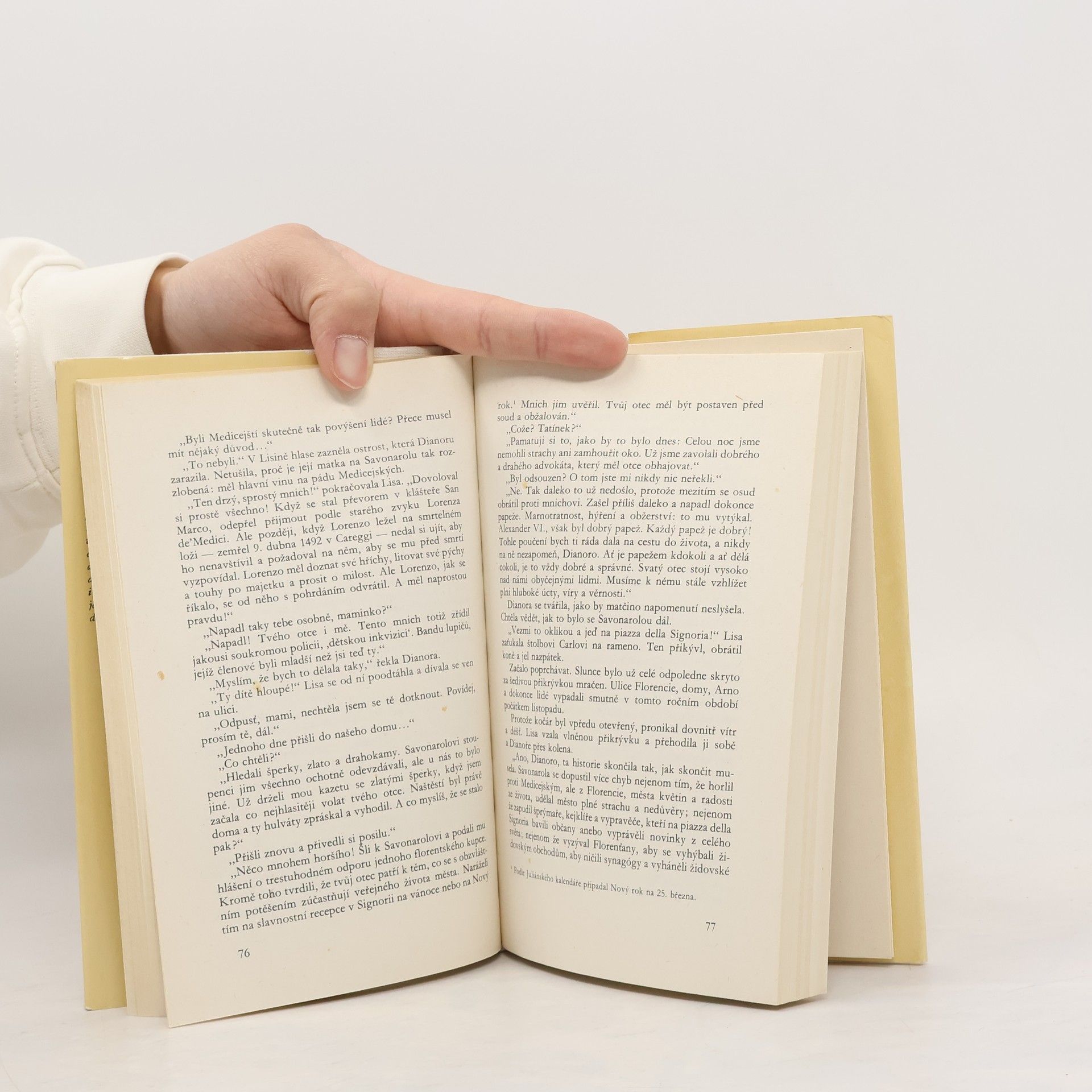 Po dlouhá staletí se táží všichni, kteří spatřili nezapomenutelný úsměv na portrétu známém jako Mona Lisa či La Gioconda, koho vlastně tehdy Leonardo da Vinci portrétoval. Co znamenal tento úsměv? V autorské fabulaci se spisovatel pokusil podat jedno z možných vysvětlení. Vedle romantickédějové linie o nenaplněné lásce k jednomu z rodu Medicejských a marném pokusu ženy aspoň jednou se ještě vzepřít vynucenému životu po boku manžela vybraného jinými se odvíjí ještě linie druhá: dobová freska Itálie, uměleckého světa a střetů dvou velikánů Leonarda da Vinciho a Michelangela Buonarrotiho i života, přání, tužeb a snah prostých lidí, jejich hledání sebe sama i odvěkých hodnot dobra a zla.
