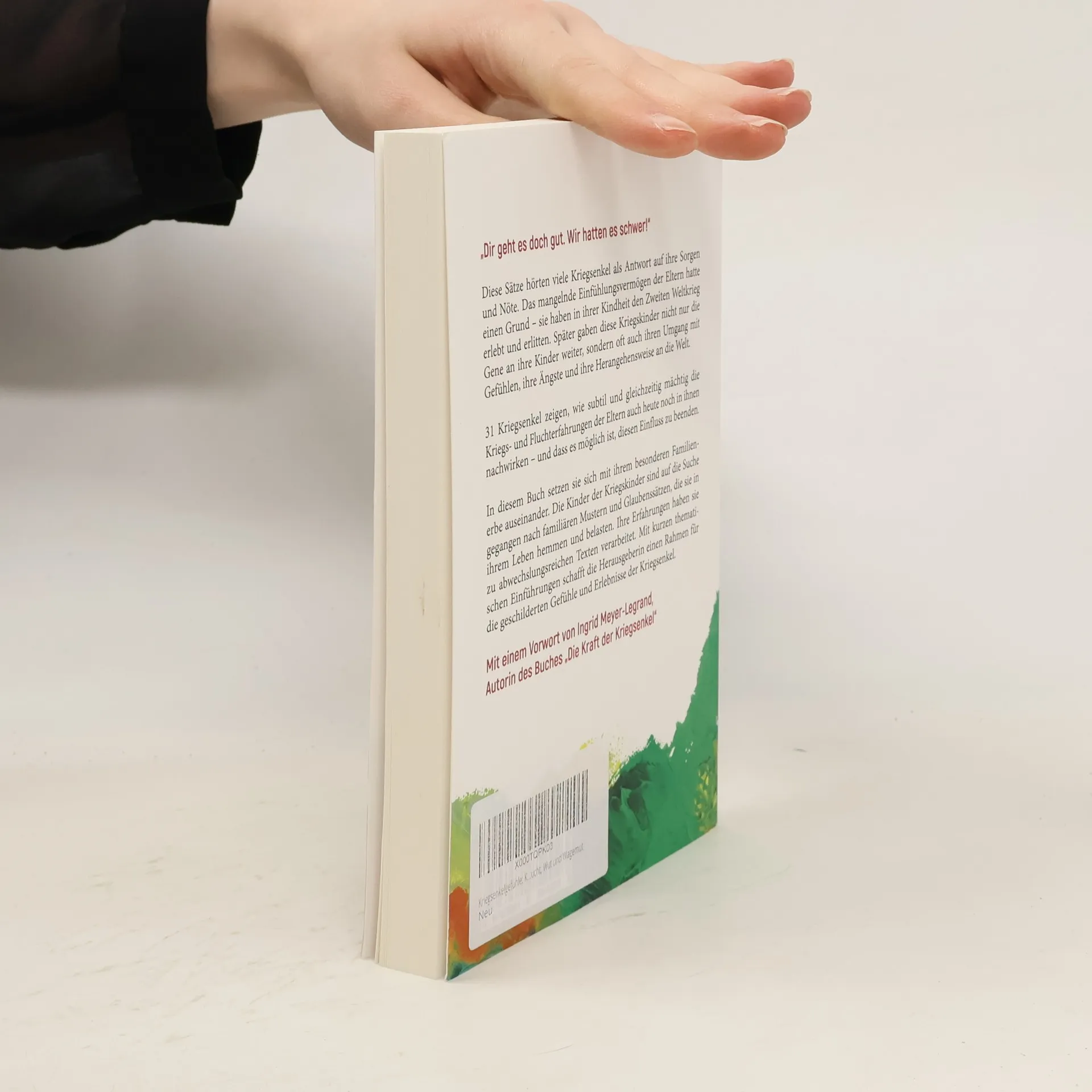 ”Dir geht es doch gut. Wir hatten es schwer!“ - Diese Sätze hörten viele Kriegsenkel als Antwort auf ihre Sorgen und Nöte. Das mangelnde Einfühlungsvermögen der Eltern hatte einen Grund – sie haben in ihrer Kindheit den Zweiten Weltkrieg erlebt und erlitten. Später gaben diese Kriegskinder nicht nur die Gene an ihre Kinder weiter, sondern oft auch ihren Umgang mit Gefühlen, ihre Ängste und ihre Herangehensweise an die Welt. 31 Kriegsenkel zeigen, wie subtil und gleichzeitig mächtig die Kriegs- und Fluchterfahrungen der Eltern auch heute noch in ihnen nachwirken – und dass es möglich ist, diesen Einfluss zu beenden. In diesem Buch setzen sie sich mit ihrem besonderen Familienerbe auseinander. Die Kinder der Kriegskinder sind auf die Suche gegangen nach familiären Mustern und Glaubenssätzen, die sie in ihrem Leben hemmen und belasten. Ihre Erfahrungen haben sie zu abwechslungsreichen Texten verarbeitet. Mit kurzen thematischen Einführungen schafft die Herausgeberin einen Rahmen für die geschilderten Gefühle und Erlebnisse der Kriegsenkel. Mit einem Vorwort von Ingrid Meyer-Legrand, Autorin des Buches ”Die Kraft der Kriegsenkel“