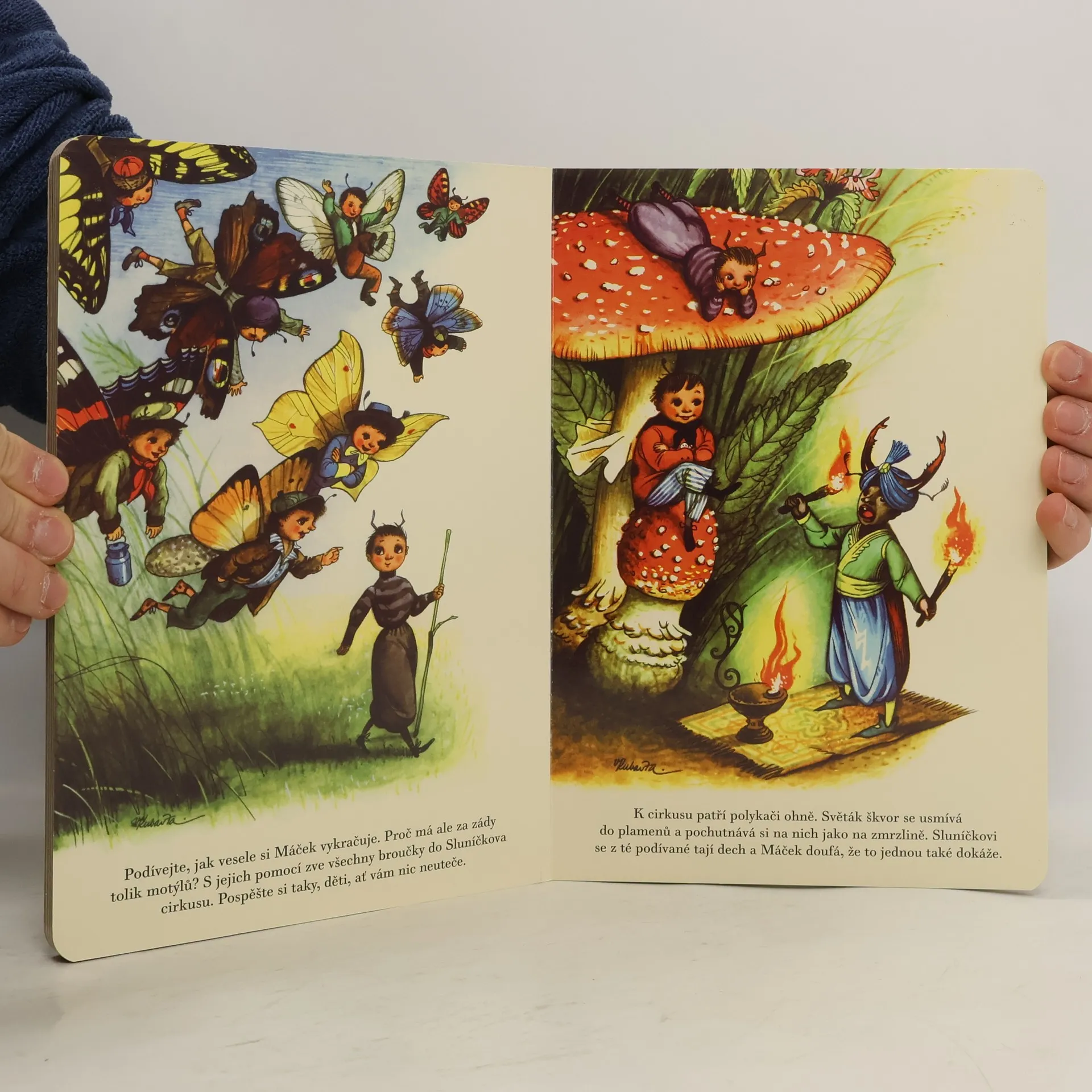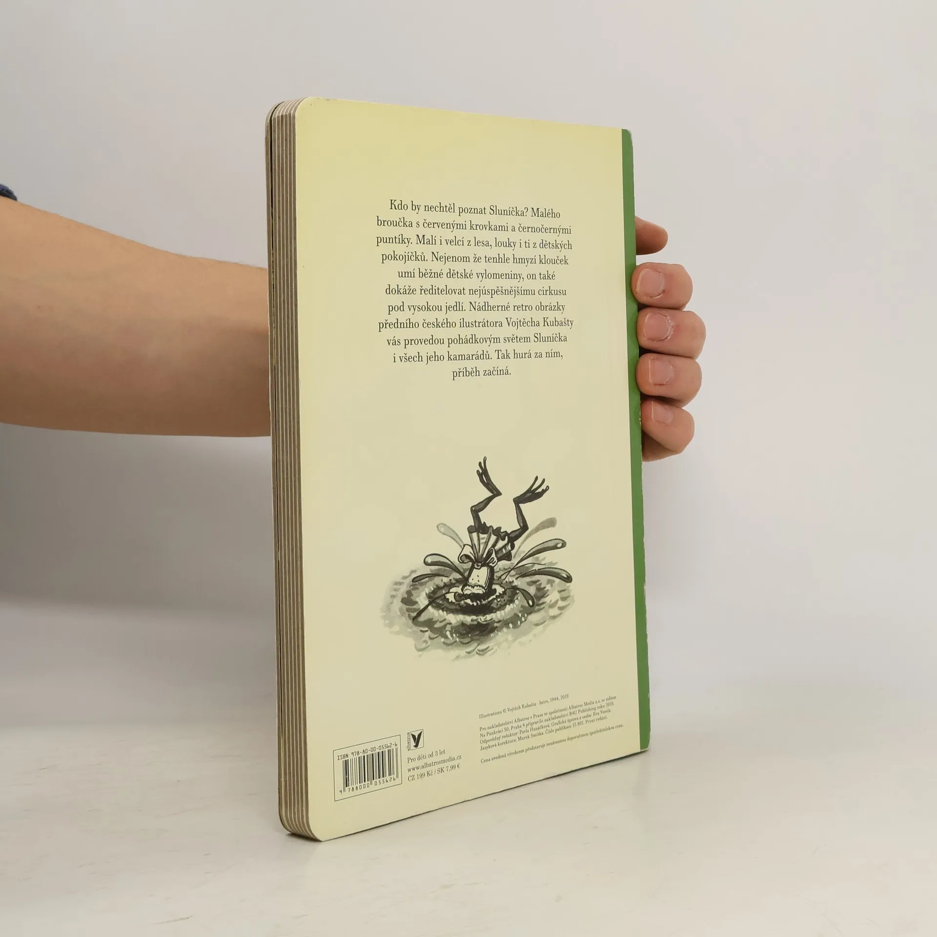 Kdo by nechtěl poznat Sluníčka? Malého broučka s červenými krovkami a černočernými puntíky. Malí i velcí z lesa, louky i ti z dětských pokojíčků. Nejenom že tenhle hmyzí klouček umí běžné dětské vylomeniny, on také dokáže ředitelovat nejúspěšnějšímu cirkusu pod vysokou jedlí. Nádherné retro obrázky předního českého ilustrátora Vojtěcha Kubašty vás provedou pohádkovým světem Sluníčka i všech jeho kamarádů. Tak hurá za ním, příběh začíná.