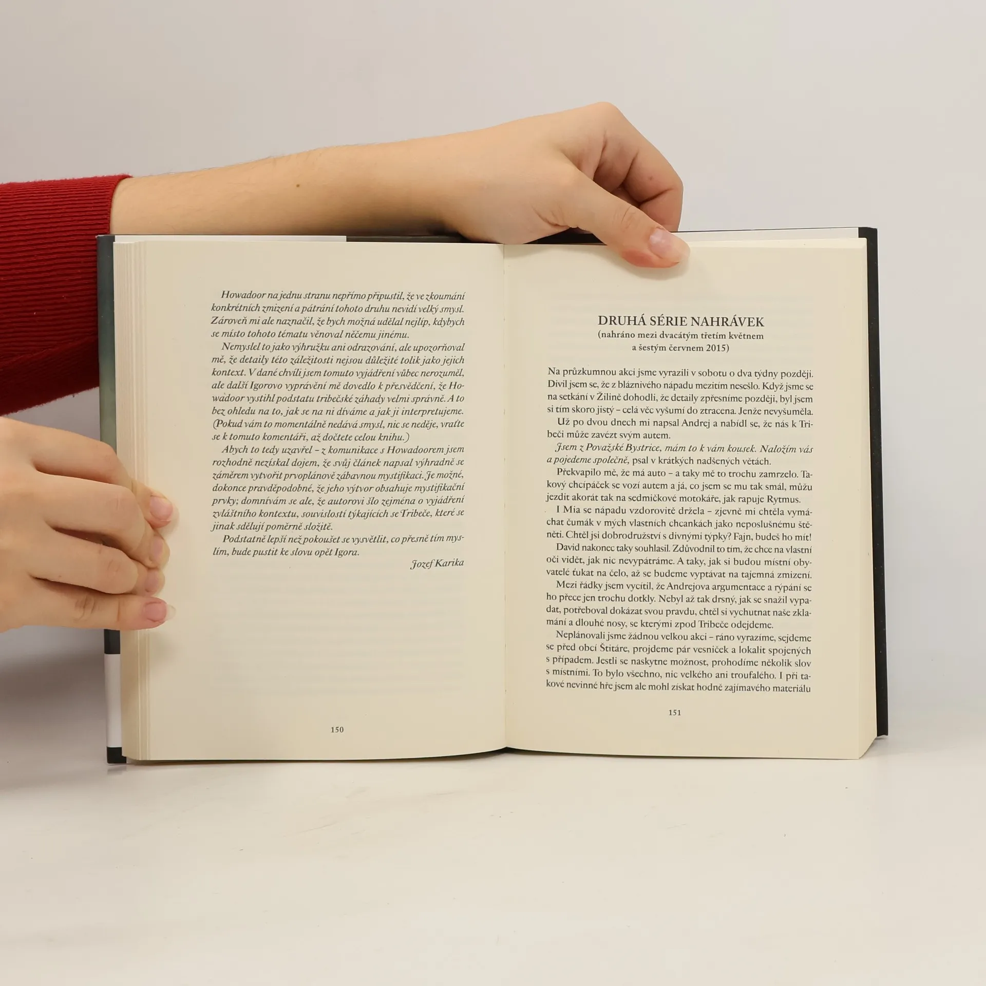 Tahle kniha vznikla zvláštním způsobem. Po vydání mysteriózního thrilleru Strach se autorovi ozval člověk, který mu povyprávěl opravdu děsivý příběh. Jozef Karika jeho vyprávění zaznamenal, mnohá tvrzení ověřil, doplnil o vlastní zjištění a zpracoval v knize, kterou máte před sebou. Na jejích stránkách rozmotává velice tajemný, tragický a hrůzostrašný případ. Zároveň poodhaluje jednu z největších záhad Slovenska – nevysvětlitelné mizení lidí v pohoří Tribeč. Legenda, záměrná mystifikace, nebo děsivá skutečnost? Tuhle otázku si klade i autor. Předkládá strhující hororový příběh a nechává na čtenáři, aby našel odpověď. Román Jozefa Kariky byl jako jediný žánrový titul v historii nominován na nejvýznamnější slovenskou literární cenu Anasoft litera.