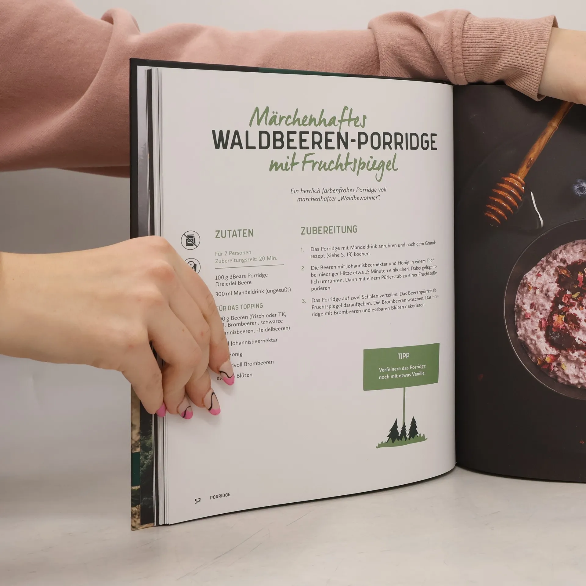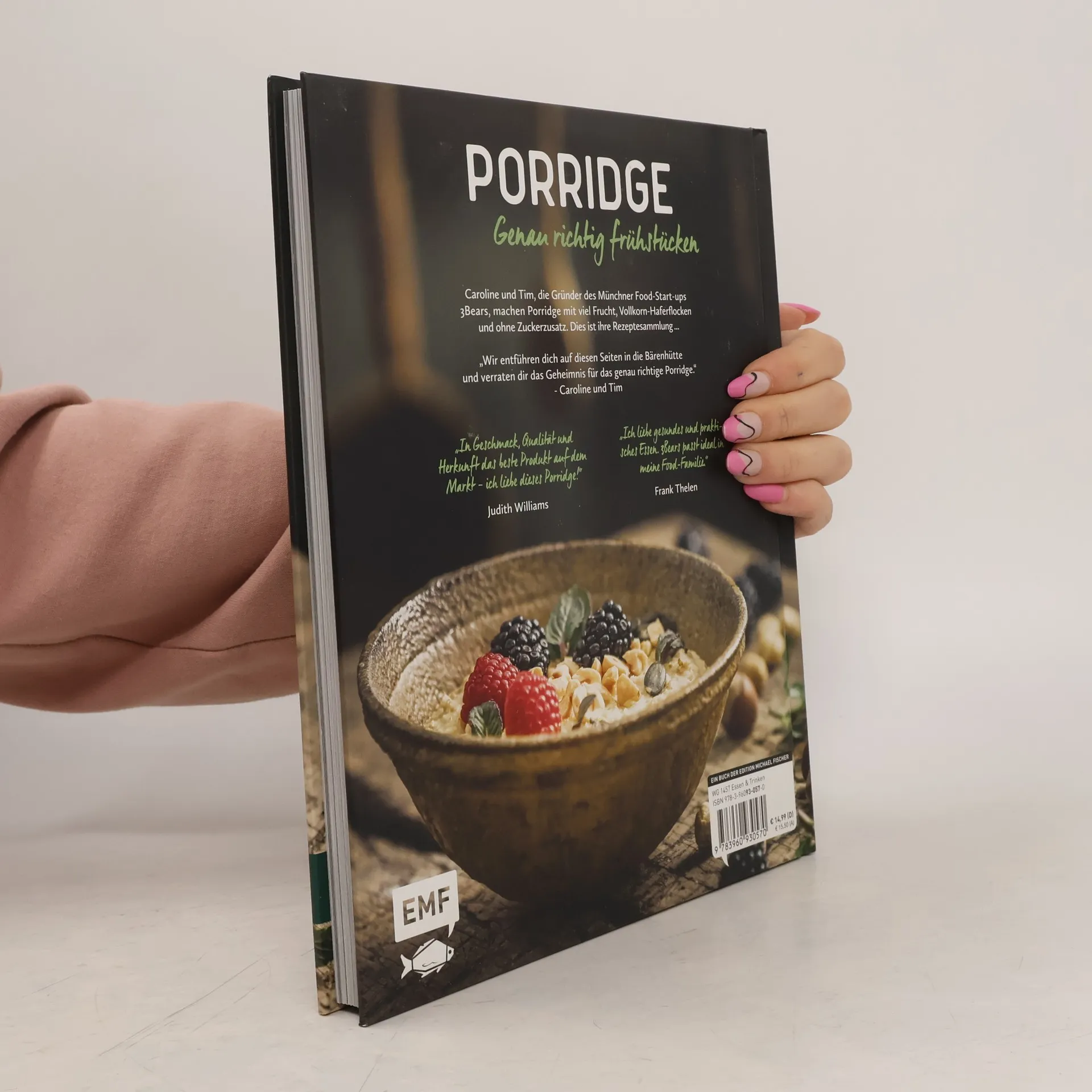 Vielen ist das leckere Porridge der 3Bears bereits aus der Vox-Sendung „Die Höhle der Löwen“ bekannt. Das traditionelle britische Frühstück ist schnell und einfach zubereitet, macht lange satt und ist eine natürliche Ballaststoff- und Proteinquelle. Die köstlichen Rezepte aus diesem Kochbuch zeigen, dass Porridge viel mehr ist als nur eine Mahlzeit aus Haferflocken und Milch. Mit den Grundzutaten lassen sich auch Toppings, Muffins, Kuchen und Smoothies im Handumdrehen zubereiten. Unter den 50 köstlichen Rezepten finden sich ein Nuss-Beeren-Topping und Overnight Oats für den perfekten Start in den Tag, Raw Energy Balls für den Snack zwischendurch und Apple Crumble mit Haferflocken und Nuss-Bananen-Brot als süßer Abschluss. Ein vollwertiger und gesunder Start in den Tag für Schleckermäuler, High-Protein-Fans und Veganer mit den Rezepten der 3Bears!