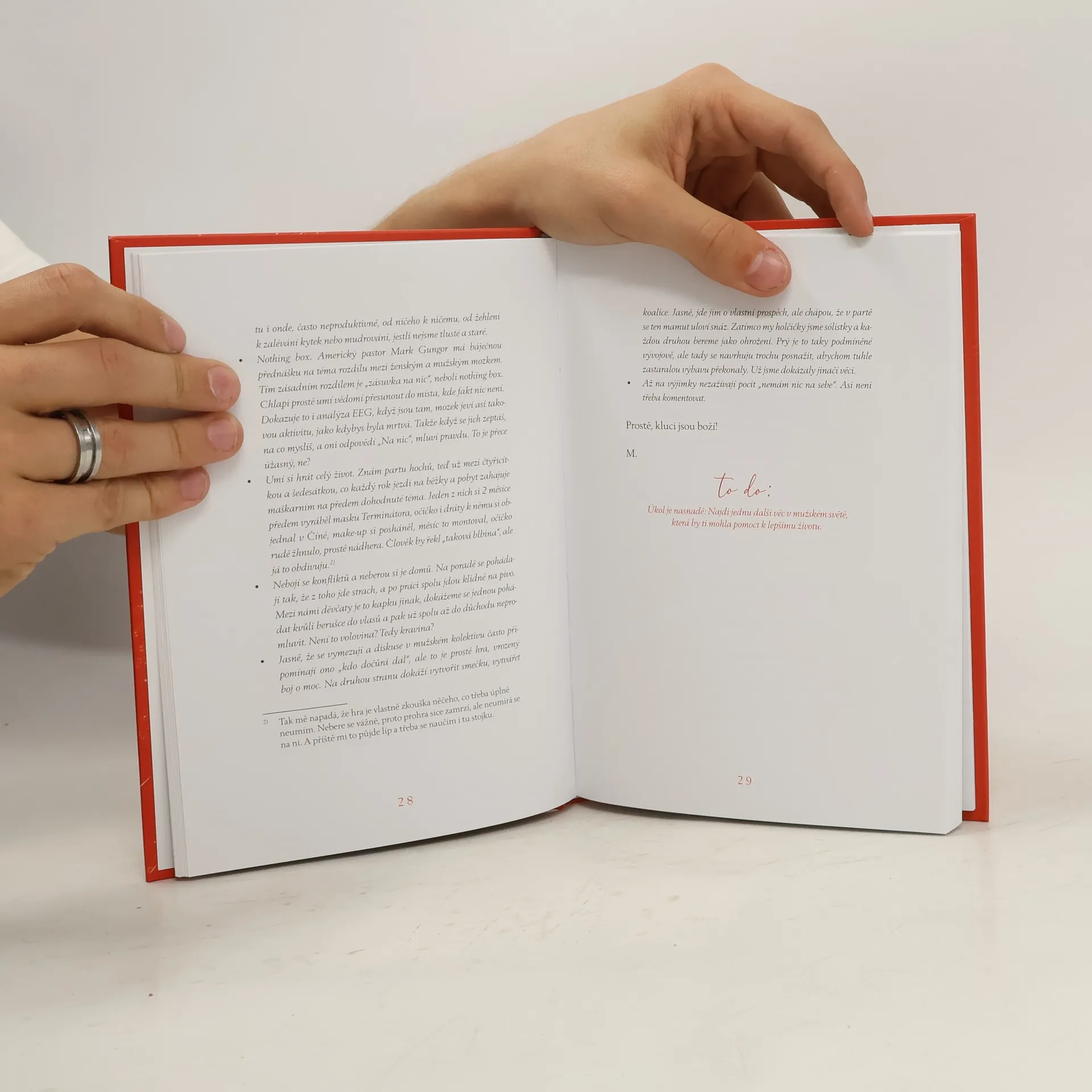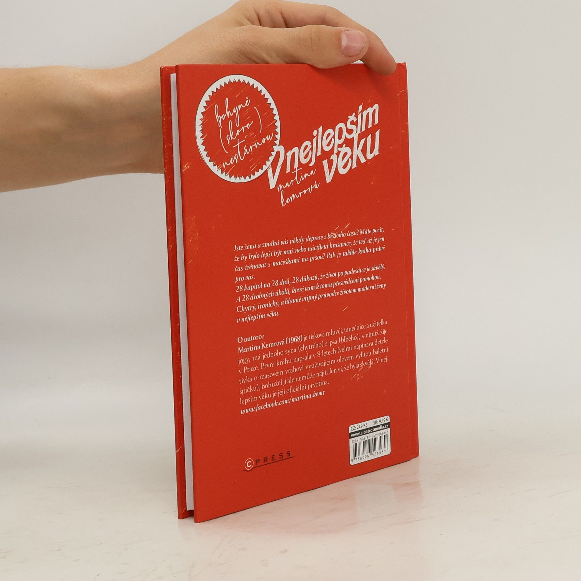 Je ti padesát, což není šestnáct, a máš pocit, že jsi stará, život skončil a čeká tě už jen cesta pouští všednosti do hrobu. Tělo bolí, kůže povoluje, nezdá se, že by svět byl ústřice, která se nechá jen tak vysrknout. Zkrátka, není lehké nacházet motivaci vyskočit ráno z postele a s úsměvem na rtech čelit realitě. Na druhé straně, je pořád dost věcí, které za to stojí. Jsou jiné, než když nám bylo dvacet, ale zato jsou prověřené časem. Říká se, že nový zvyk se ukotví, pokud ho budeš dodržovat 28 dní. A tak si autorka řekla, že hodí na papír 28 důvodů, proč je zrovna padesátka, když ne boží, tak fajn věk. Jeden na každý den plus úkol na konci. A schválně jestli i 29. den budeš stejně trudomyslná, jako na začátku. A já ti přísahám, že ne! Chytrý, ironický, a hlavně vtipný průvodce životem moderní ženy v nejlepším věku.
