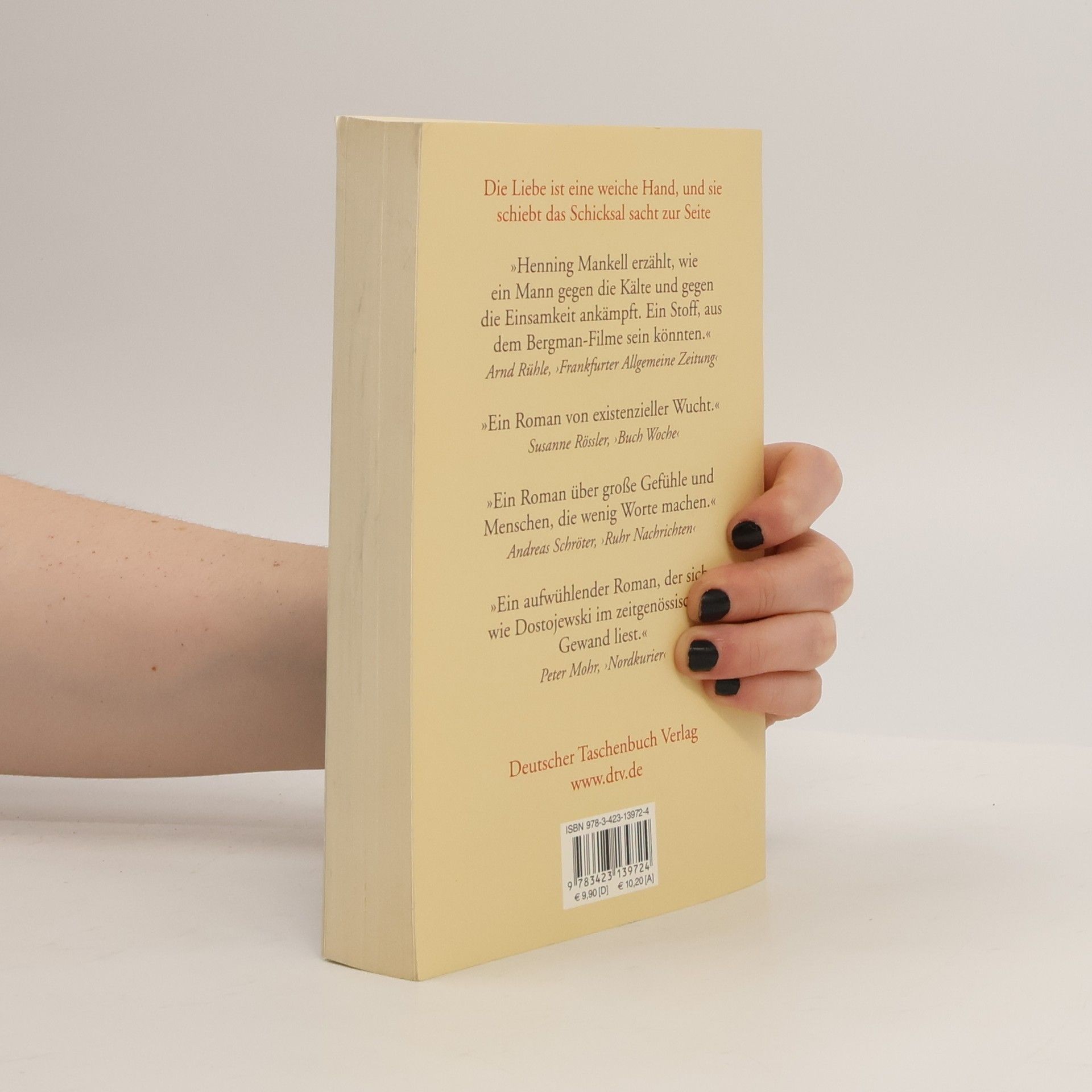 Ein Roman über große Gefühle vom schwedischen Meister der MelancholieFredrik Welin ist etwas widerfahren, das er nur »die Katastrophe« nennt. Danach hat sich der Chirurg auf eine kleine Insel in den Schären zurückgezogen und meidet jeden Kontakt mit der Außenwelt. Doch eines Tages taucht seine Jugendliebe Harriet wie aus dem Nichts auf dem Eis vor seinem Haus auf. Sie erinnert ihn an ein altes Versprechen, und er folgt ihr auf eine Reise in die Vergangenheit, voller unverhoffter und außergewöhnlicher Begegnungen. Eine Reise, die ihm den Weg zurück ins Leben und zu den Menschen weisen wird.