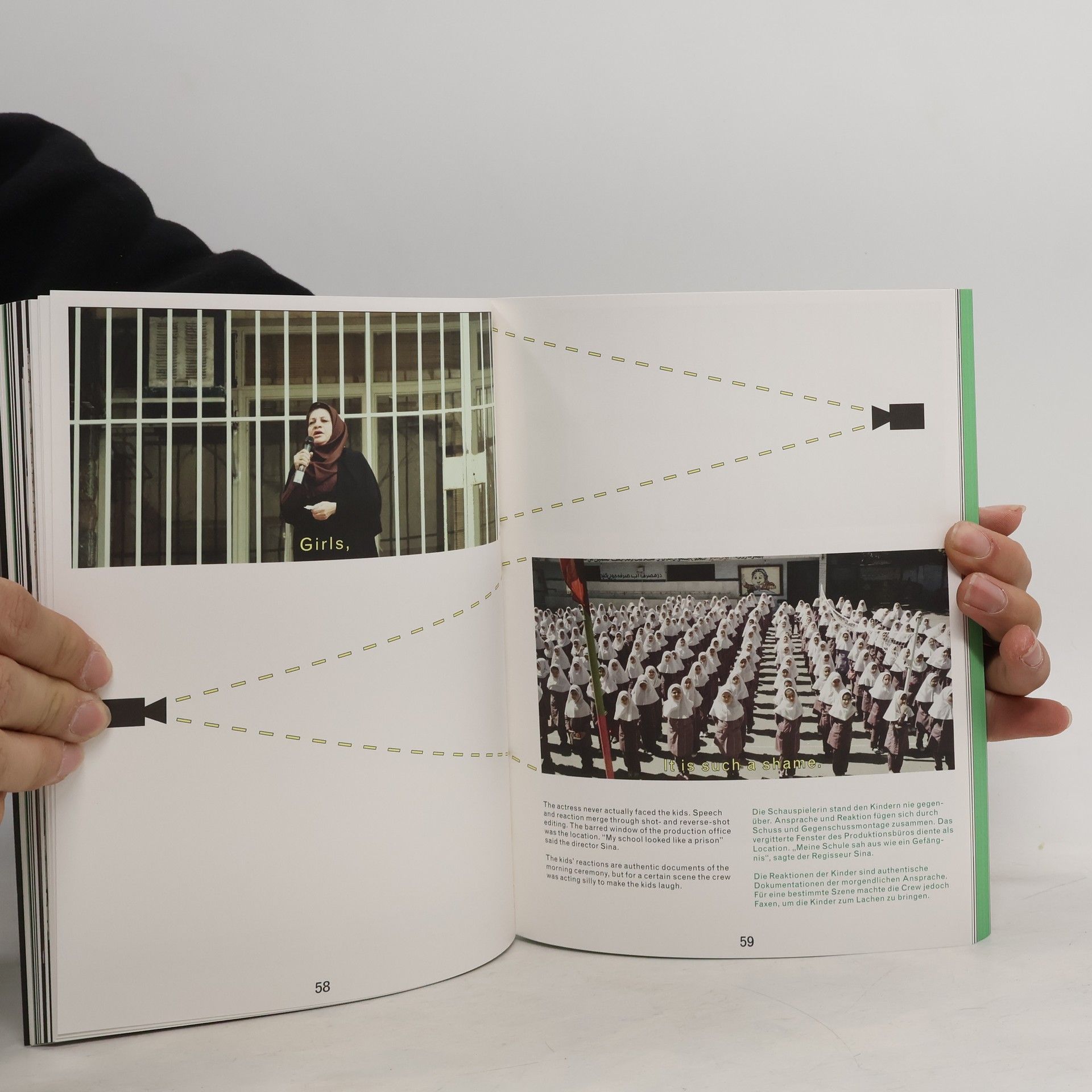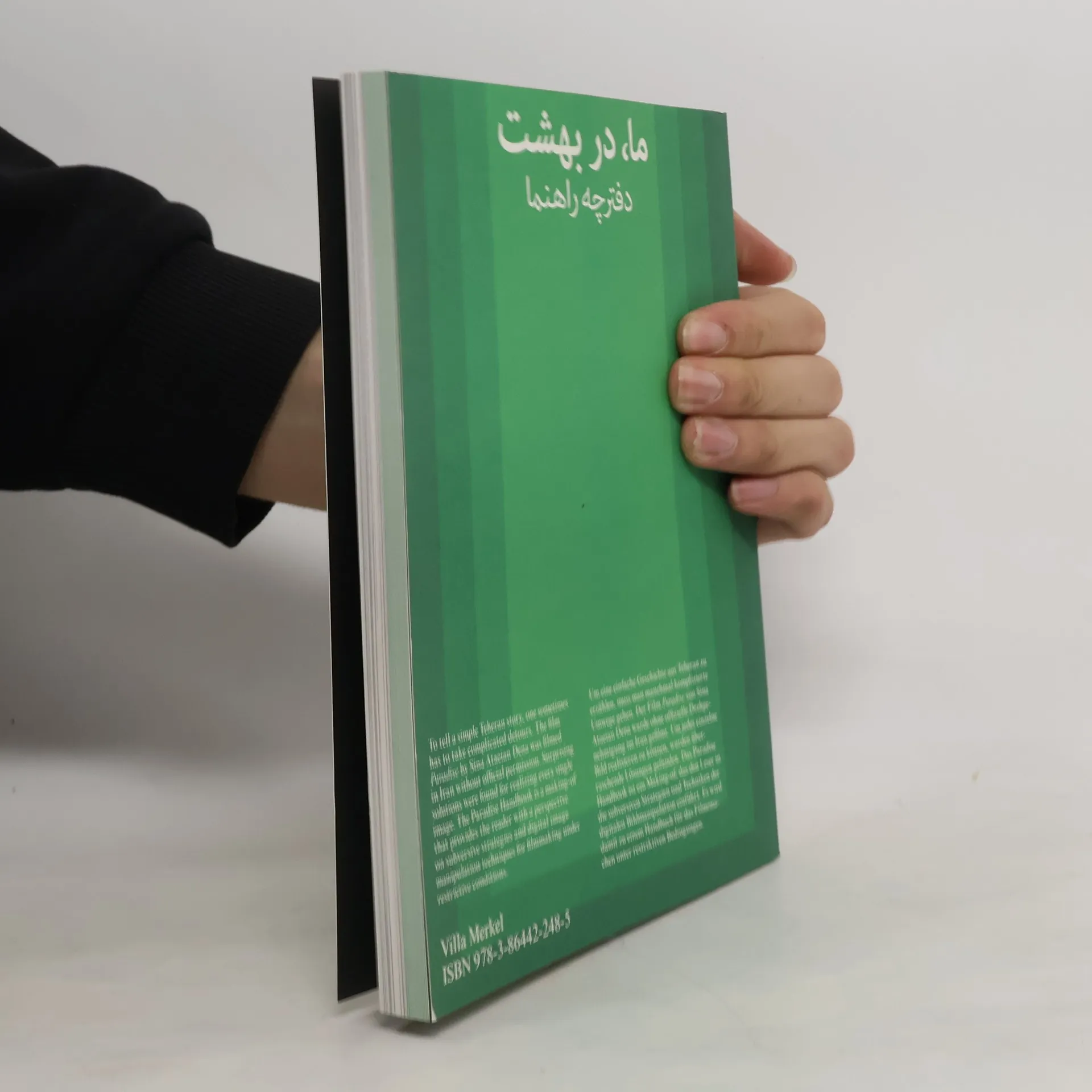 Paradise handbook reveals a concise insight into the genesis of the film Paradise, which director Sina Ataeian Dena managed to realize in Iran over a period of many years without filming permission and on a very small budget. The resulting footage was eventually brought out of the country and processed and finished in Berlin-Babelsberg. Paradise celebrated its premiere in 2015 in competition at the Locarno Film Festival and was subsequently awarded various prizes. The book reveals a fascinating view of how the film crew dealt creatively with the massive restrictions on filming in Iran. It breaks down, like a manual, the logistical, strategic, and technical efforts underlying the images and scenes that the team applied to circumvent the plethora of restrictions.