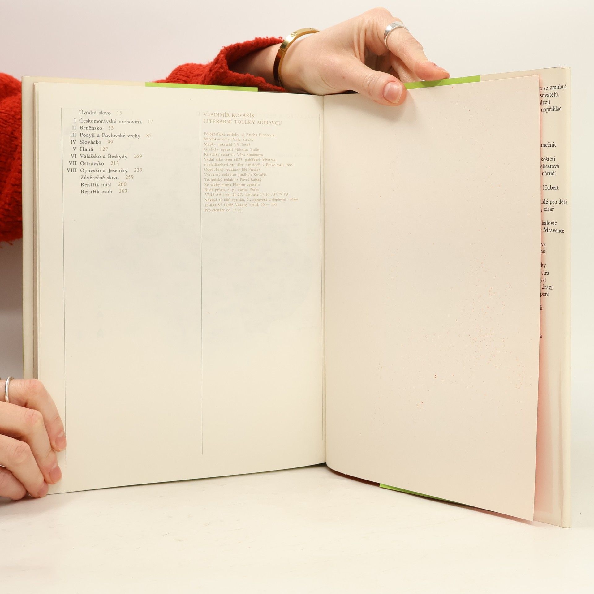 Podrobný literární místopis. Území historické Moravy a Slezska je rozděleno na tradiční kulturní a krajinné oblasti. Autor popisuje jednotlivé obce a vypráví o vztahu míst k naší i světové literatuře. Jde o rodiště a bydliště spisovatelů, o dějiště literárních děl a dnes už zapomenuté osoby, které byly živými předlohami postav literárních, o zobrazení rodného či líbezného kraje našimi spisovateli a básníky.