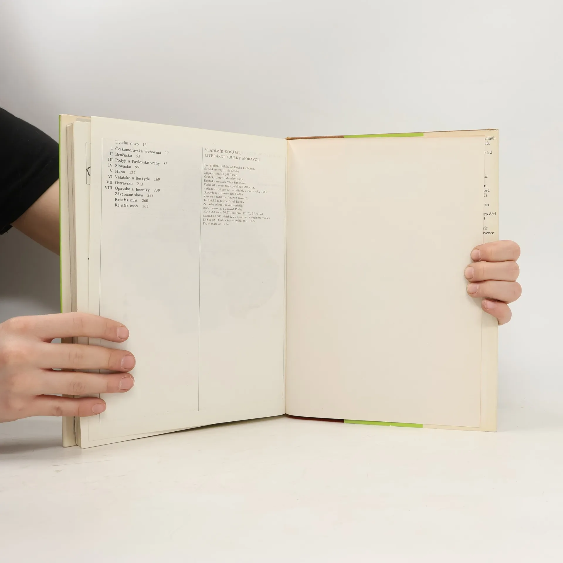 Podrobný literární místopis. Území historické Moravy a Slezska je rozděleno na tradiční kulturní a krajinné oblasti. Autor popisuje jednotlivé obce a vypráví o vztahu míst k naší i světové literatuře. Jde o rodiště a bydliště spisovatelů, o dějiště literárních děl a dnes už zapomenuté osoby, které byly živými předlohami postav literárních, o zobrazení rodného či líbezného kraje našimi spisovateli a básníky.