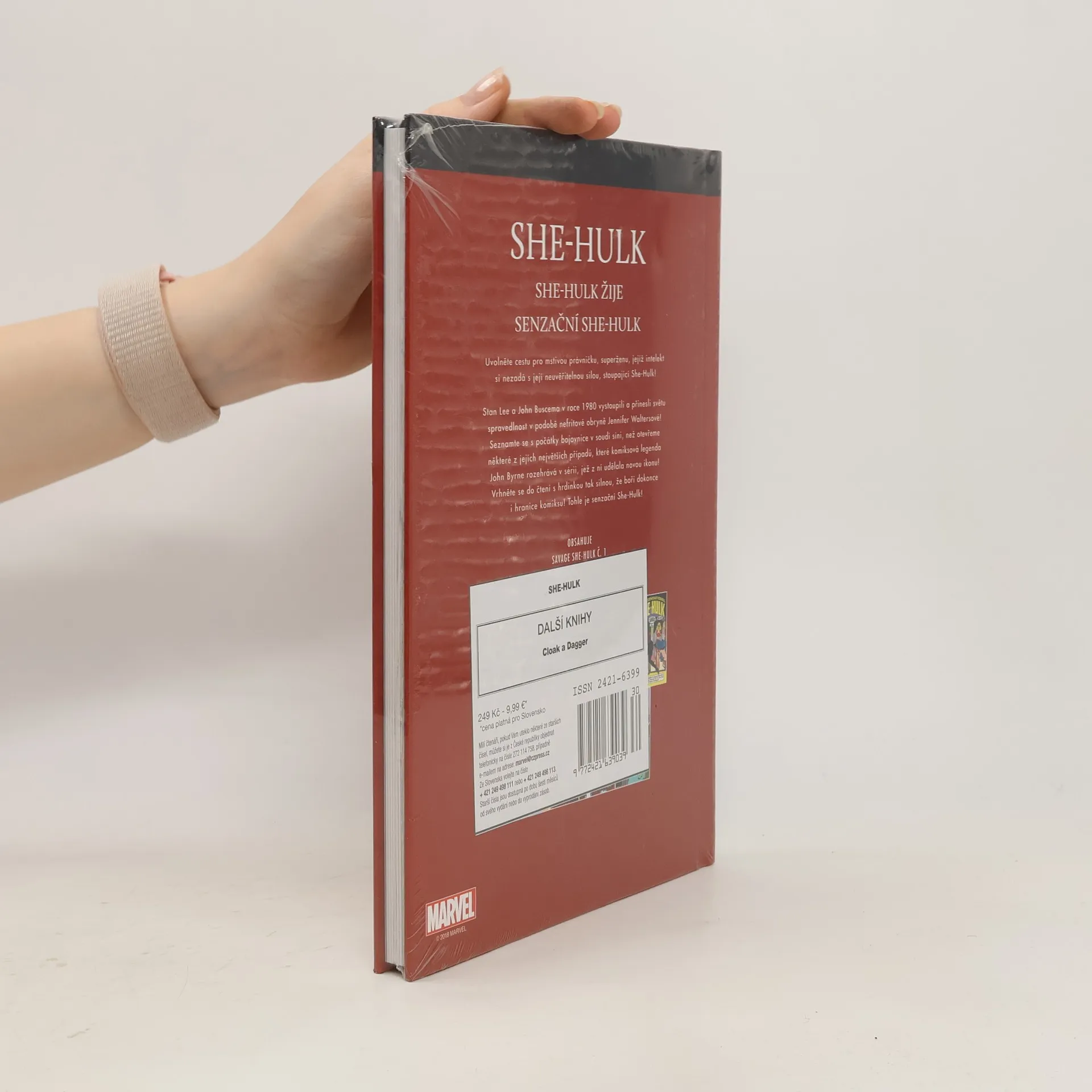 Uvolněte cestu pre mstivou právničku, superženu, jejíž intelekt si nezadá s její neuvěřitelnou silou, stoupající She-Hulk! Sten Lee a John Buscema v roce 1980 vystoupili a přinesli světu spravedlnost v podobě nefritové obryně Jennifer Waltersové! Seznamte se s počátky bojovnice v soudní síni, než otevřeme některé z jejích největších případů, které komiksová legenda John Byrne rozehrává v sérii, jež z ní udělala novou ikonu! Vrhněte se do čtení s hrdinkou tak silnou, že boří dokonce i hranice komiksu! Tohle je senzační She-Hulk! Obsahuje příběhy: She-Hulk žije Druhá šance Útok strašlivých ropušáků aneb žába skáče na blátě Můj hvězdný host... můj nepřítel! Vysoké nároky Doktor ordinuje! Hvězdná mýtná brána Nemám žádná ústa a jsem zmetek! Největší světový detektiv!
