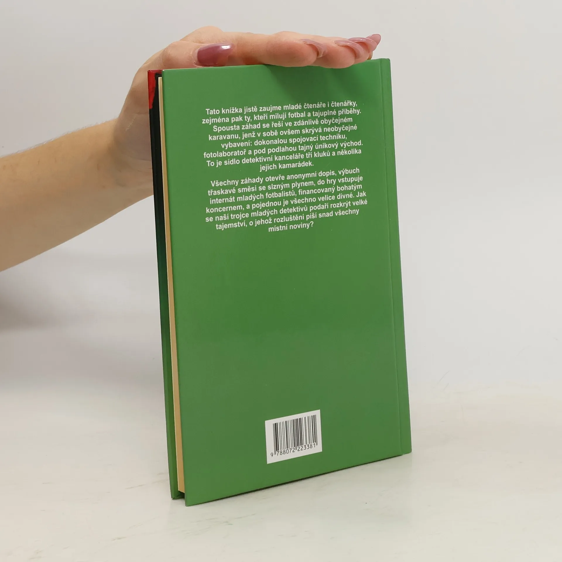 Spousta záhad se řeší ve zdánlivě obyčejném karavanu, jenž v sobě ovšem skrývá neobyčejné vybavení: dokonalou spojovací techniku, fotolaboratoř a pod podlahou tajný únikový východ. To je sídlo detektivní kanceláře tří kluků a několika jejich kamarádek. Všechny záhady otevře anonymní dopis, výbuch třaskavé směsi se slzným plynem, do hry vstupuje internát mladých fotbalistů, financovaný bohatým koncernem, a pojednou je všechno velice divné. Jak se naší trojce mladých detektivů podaří rozkrýt velké tajemství, o jehož rozluštění píší snad všechny místní noviny? Tato knížka jistě zaujme mladé čtenáře i čtenářky, zejména pak ty, kteří milují fotbal a tajuplné příběhy.