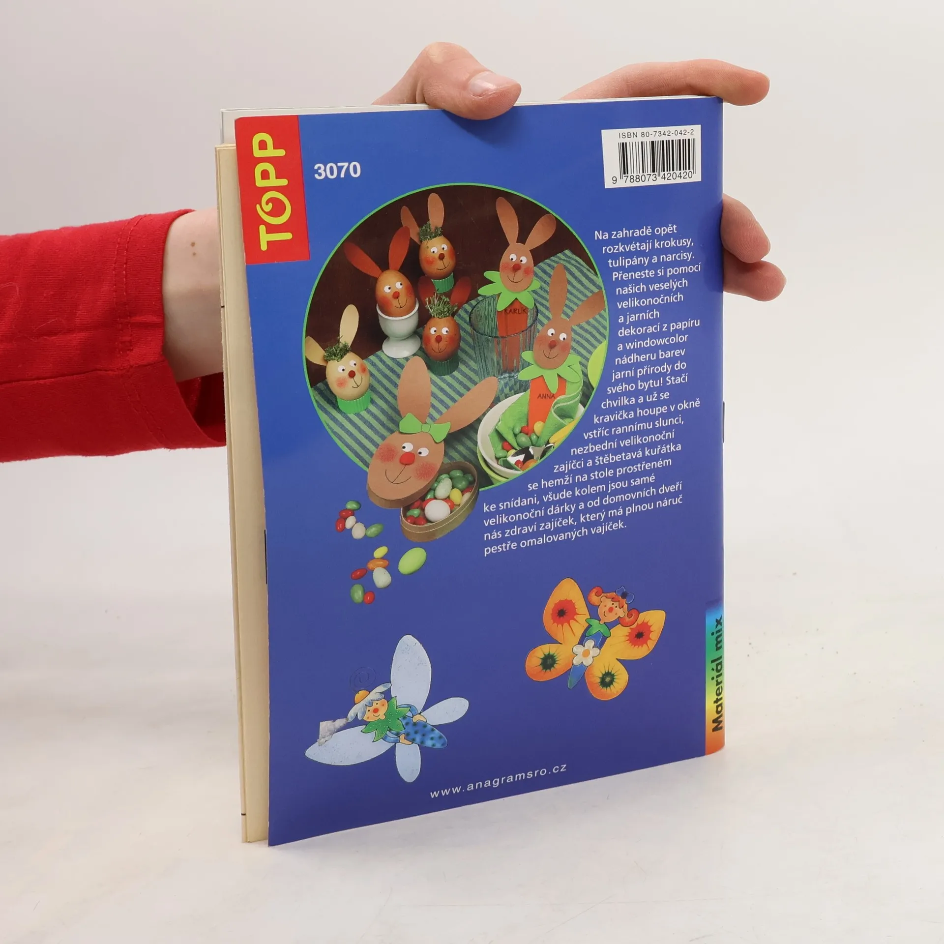 V této knížce vám představíme barevný svět Velikonoc: veselé obrázky do oken z papíru a barev windowcolor, originální dekorace na stůl z papíru a plsti. Některé velikonoční motivy jsou tradiční - třeba slepičky a vajíčka různých barev a tvarů, jiné vznikly díky vtipným a nápaditým kombinacím, například roztomilé slepičky a veselé květinové děti.