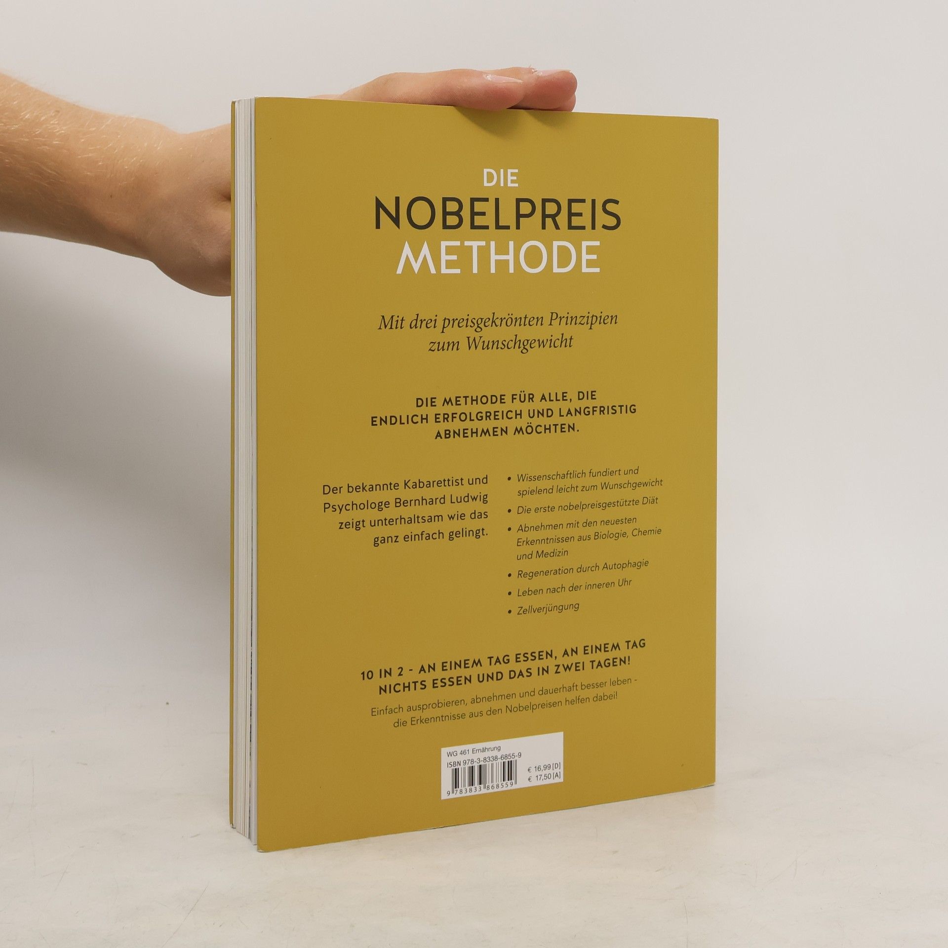 Sensationell: Wissenschafts-Kabarettist und Bestseller-Autor Bernhard Ludwig vereint drei preisgekrönte Methoden zu einer genial einfachen Abnehmmethode! Nobelpreis 2016 - Regeneration durch Autophagie: Als Grundlage der ketogenen Ernährung bedingt die Autophagie, dass der Körper aus sich selbst lebt, was mittels Intervallfastenphasen leicht gesteuert werden kann. Nobelpreis 2017 - Chronobiologischer Stoffwechselrhythmus: Es sind molekulare Mechanismen, die unseren Tag-Nacht-Rhythmus, das Uhrwerk unserer Zellen steuern. Wer ihre Bedeutung für unseren Stoffwechsel versteht, ist auf dem besten Weg zum Abnehmerfolg. Nobelpreis (noch ausstehend) – Zellverjüngung: Die neueste bahnbrechende Entdeckung der Molekularbiologie ist das Spermidin, das sowohl beim Sex, wie auch beim Fasten freigesetzt wird und sich in vielen Lebensmitteln findet. Es verlangsamt den Alterungsprozess und ist ein wahrer Zauberstoff in der Behandlung von Alzheimer und vielen weiteren Erkrankungen. Abnehmen mit gebündelter Wissenschaft!