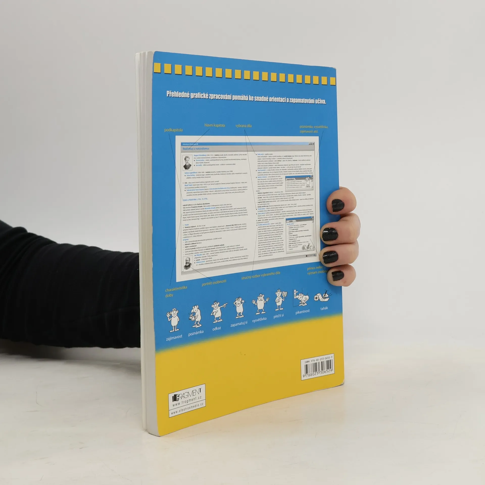 Učebnice, která přehledně shrnuje veškeré učivo světové a české literatury probírané na středních školách. Nejoblíbenější doplňková učebnice literatury připraví každého studenta nejen k maturitní zkoušce, ale i k přijímacím zkouškám na vysokou školu. Pátý dotisk 2. vydání, rok 2012. Edice: Maturita v kostce.
