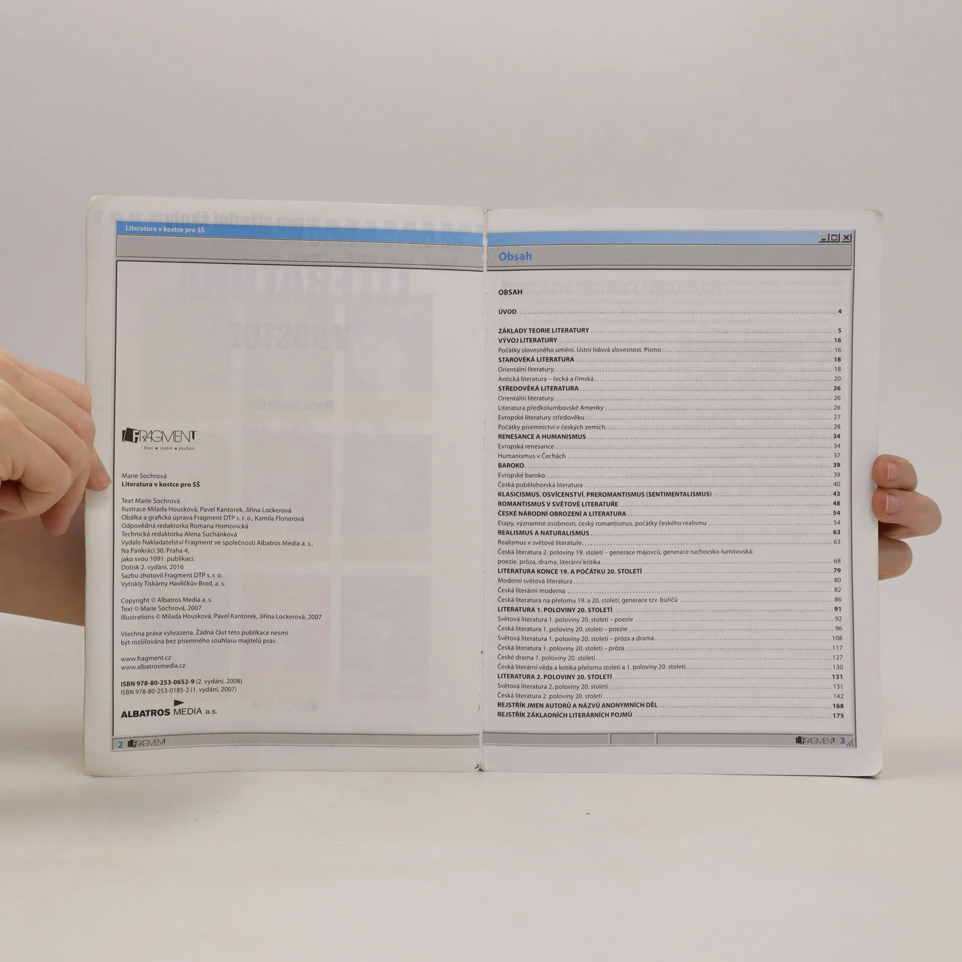 Učebnice, která přehledně shrnuje veškeré učivo světové a české literatury probírané na středních školách. Nejoblíbenější doplňková učebnice literatury připraví každého studenta nejen k maturitní zkoušce, ale i k přijímacím zkouškám na vysokou školu. Pátý dotisk 2. vydání, rok 2012. Edice: Maturita v kostce.