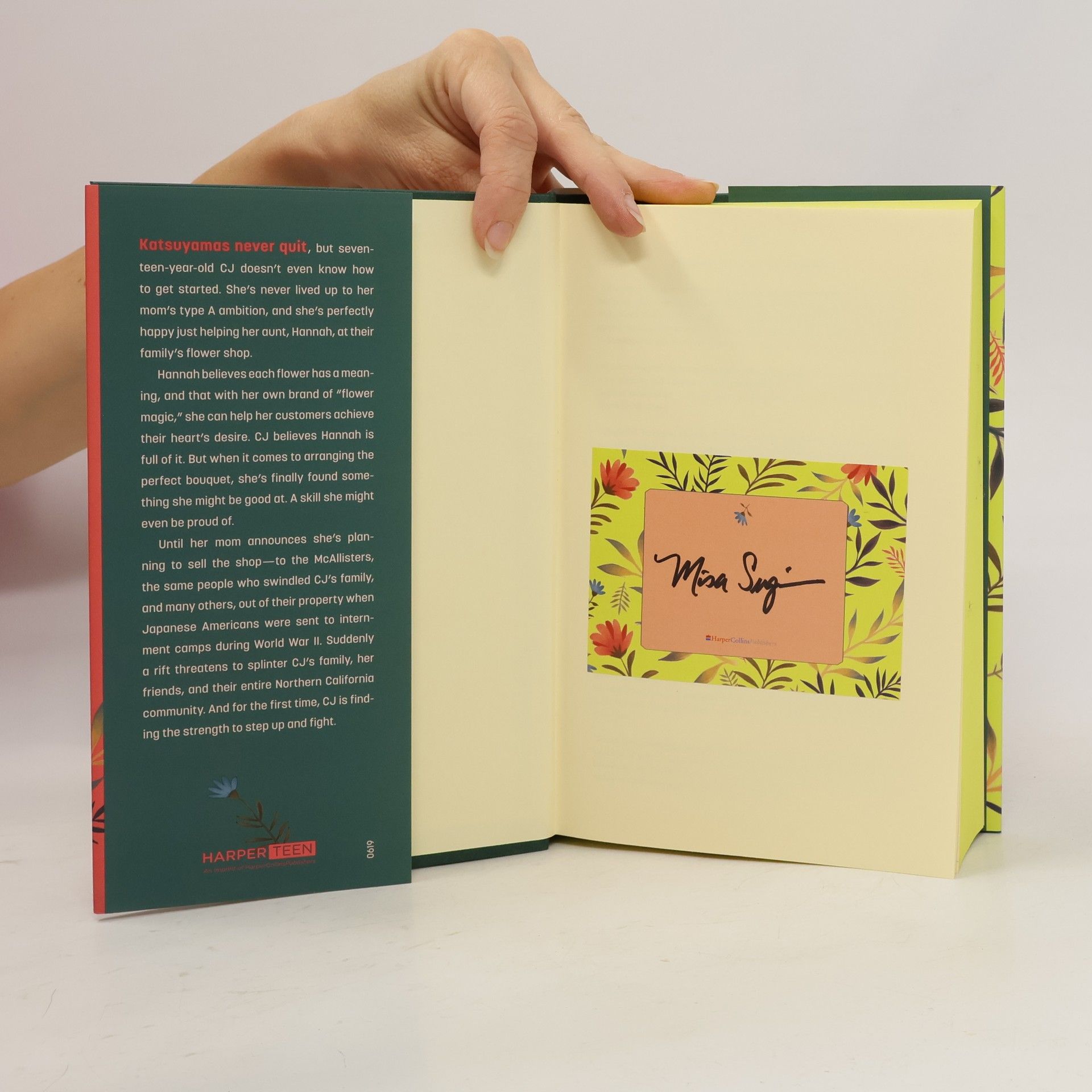 For fans of Jenny Han, Morgan Matson, and Sandhya Menon, critically acclaimed author Misa Sugiura delivers a richly crafted contemporary YA novel about family, community, and the importance of writing your own history. The author of the Asian Pacific American Award-winning It’s Not Like It’s a Secret is back with another smartly drawn coming-of-age novel that weaves riveting family drama, surprising humor, and delightful romance into a story that will draw you in from the very first page. Katsuyamas never quit—but seventeen-year-old CJ doesn’t even know where to start. She’s never lived up to her mom’s type A ambition, and she’s perfectly happy just helping her aunt, Hannah, at their family’s flower shop. She doesn’t buy into Hannah’s romantic ideas about flowers and their hidden meanings, but when it comes to arranging the perfect bouquet, CJ discovers a knack she never knew she had. A skill she might even be proud of. Then her mom decides to sell the shop—to the family who swindled CJ’s grandparents when thousands of Japanese Americans were sent to internment camps during WWII. Soon a rift threatens to splinter CJ’s family, friends, and their entire Northern California community; and for the first time, CJ has found something she wants to fight for.