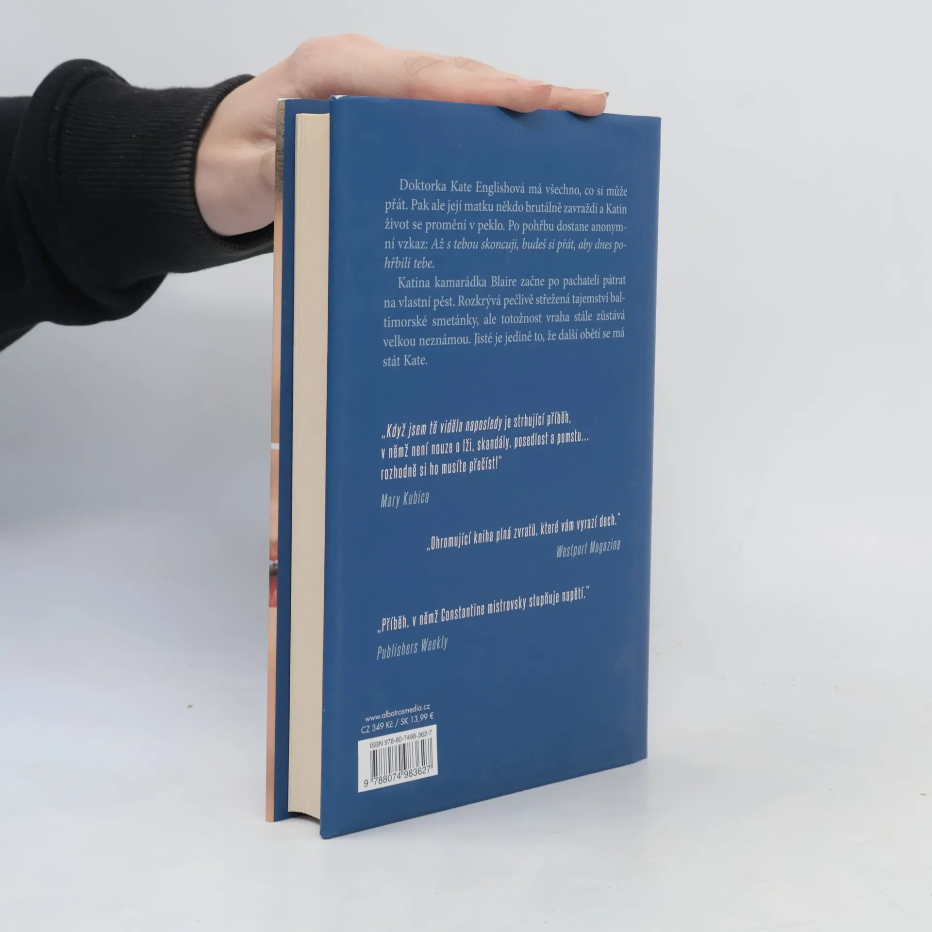Doktorka Kate Englishová má všechno, co si jen může přát - fungující rodinu, slušný majetek, skvělou rozeběhnutou kariéru, krásný dům. Selanka se ale rázem promění na peklo, když je Katina matka nalezena brutálně zavražděna ve vlastním domě. Večer po matčině pohřbu se Katin žal změní v čirou hrůzu, protože dostane anonymní zprávu. "Až s tebou skončím, budeš si přát, aby dnes pohřbili tebe." Vyděšená Kate neví, co dělat, a tak s povděkem přijímá nabídku své dávné kamarádky Blaire. Ta se rozhodne pustit do pátrání na vlastní pěst a zjistit, kdo za vraždou a nenávistným vzkazem stojí. Jakmile však Blaire rozhodí první sítě, začne na povrch vyplouvat pečlivě skrývaná skutečnost: v baltimorské vysoké společnosti zdaleka není všechno takové, jaké se jeví. Na světlo vycházejí nevěry, lži a zrady, ale Blaire se nenechá odradit a dál klade nepříjemné otázky. Zatímco napětí a podezřívavost narůstají do nesnesitelné míry, totožnost vraha stále zůstává velkou neznámou. Jisté je jedině to, že jeho další obětí se má stát Kate.