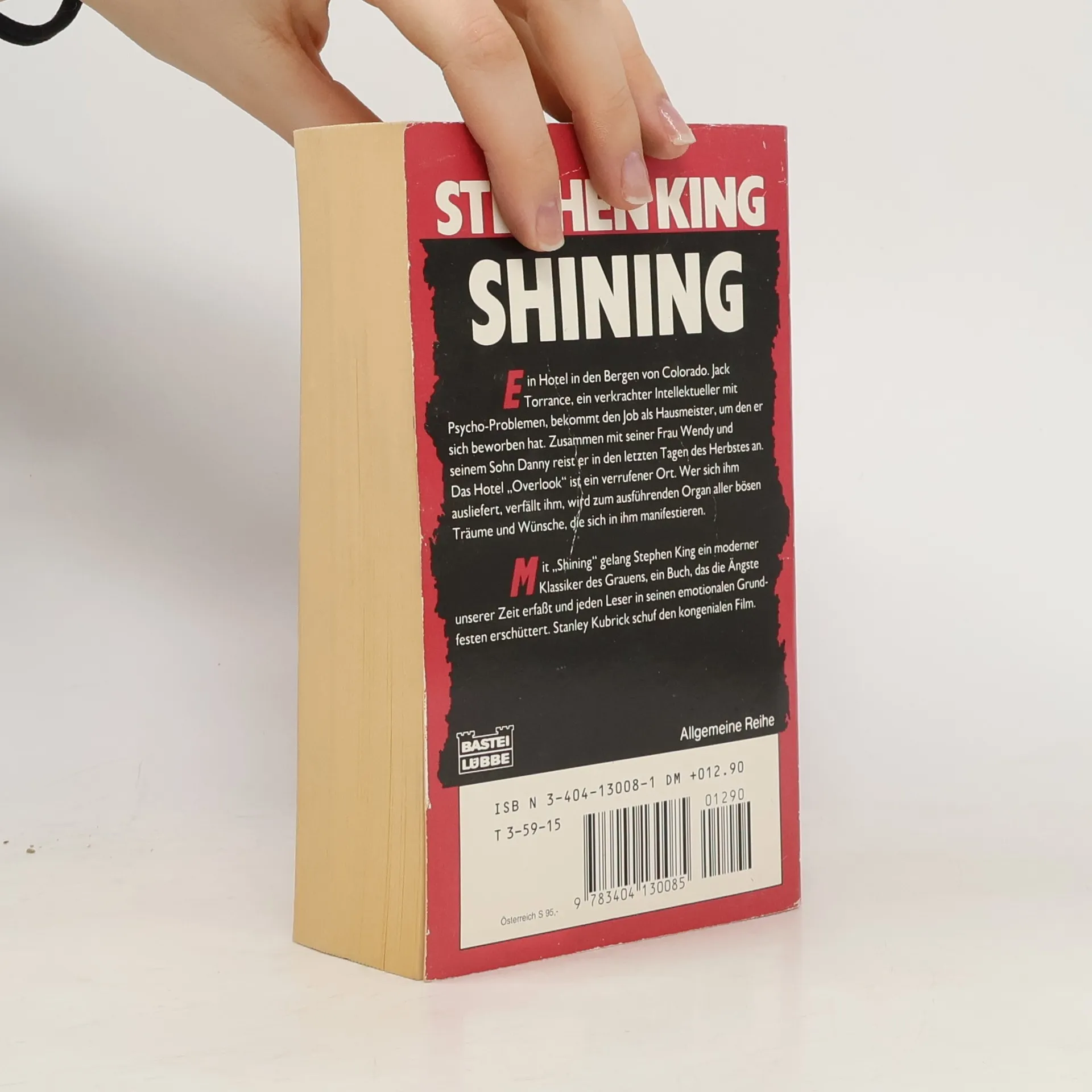 Ein Hotel in den Bergen von Colorado. Jack Torrance, ein verkrachter Intellektueller mit Psycho-Problemen, bekommt den Job als Haumeister, um den er sich beworben hat. Zusammen mit seiner Frau Wendy und seinem Sohn Danny reist er in den letzten Tagen des Herbstes an. Das Hotel "Overlook" ist ein verrufener Ort. Wer sich ihm ausliefert, verfällt ihm, wird zum ausführenden Organ aller bösen Träume und Wünsche, die sich in ihm manifestieren. Mit Shining gelang Stephen King ein moderner Klassiker des Grauens, ein Buch, das die Ängste unserer Zeit erfasst und jeden Leser in seinen emotionalen Grundfesten erschüttert.