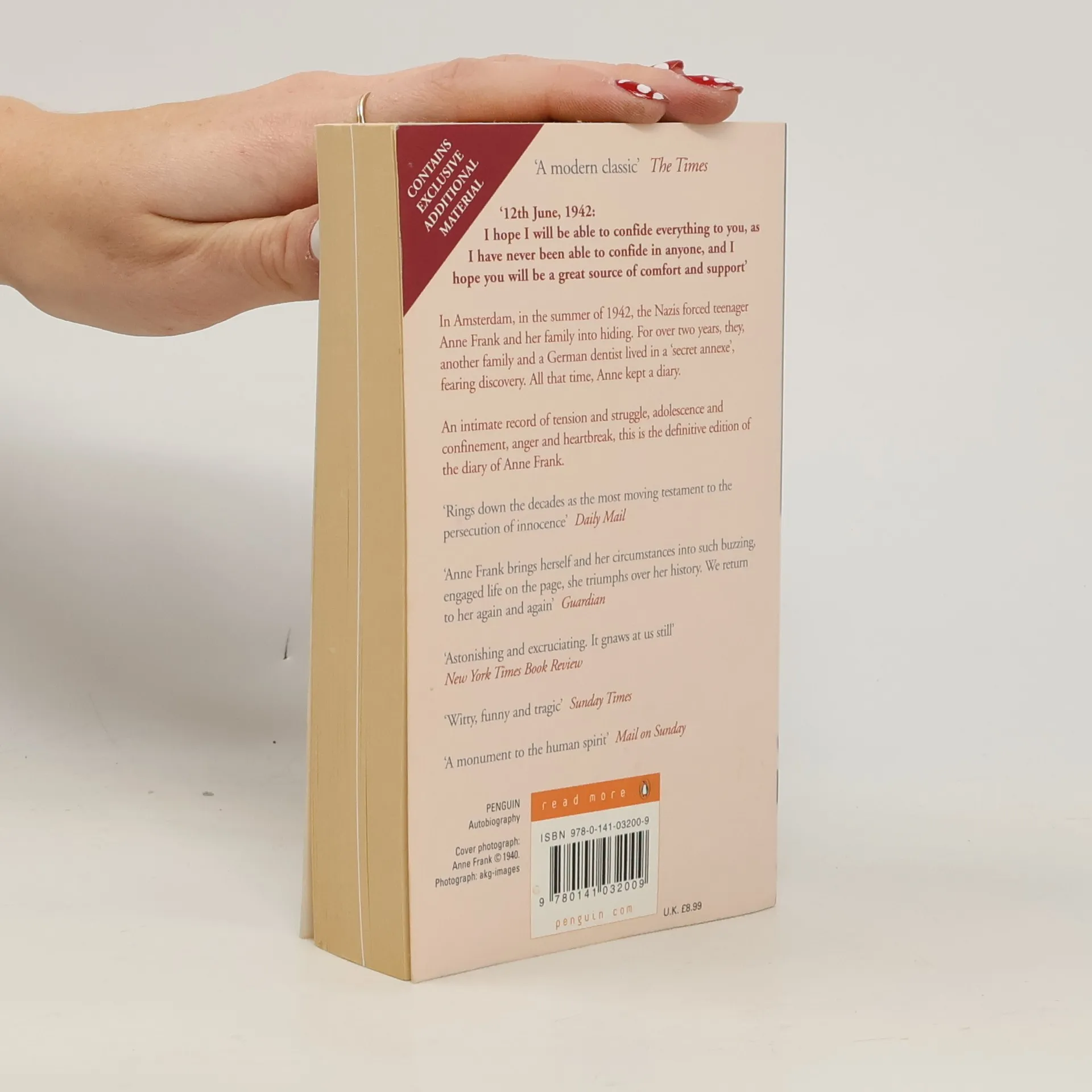 In Amsterdam, in the summer of 1942, the Nazis forced teenager Anne Frank and her family into hiding. For over two years, they, another family and a German dentist lived in a 'secret annexe', fearing discovery. All that time, Anne kept a diary. An intimate record of tension and struggle, adolescence and confinement, anger and heartbreak, this is the definitive edition of the diary of Anne Frank.