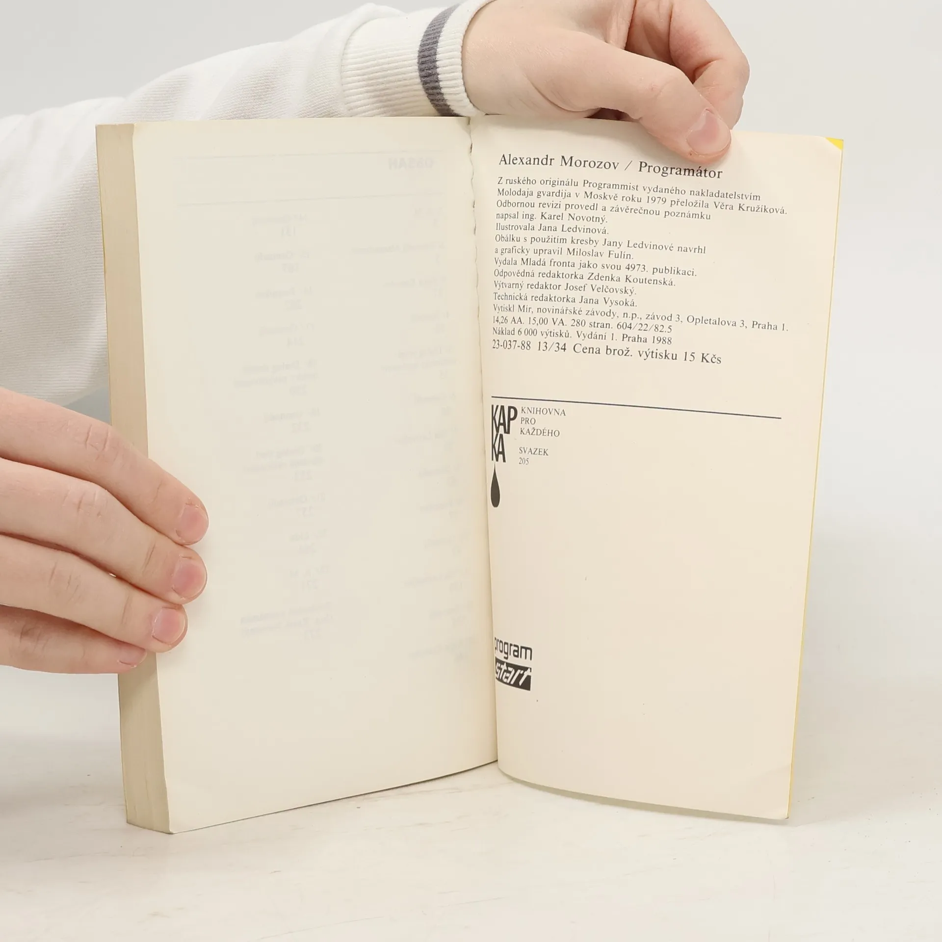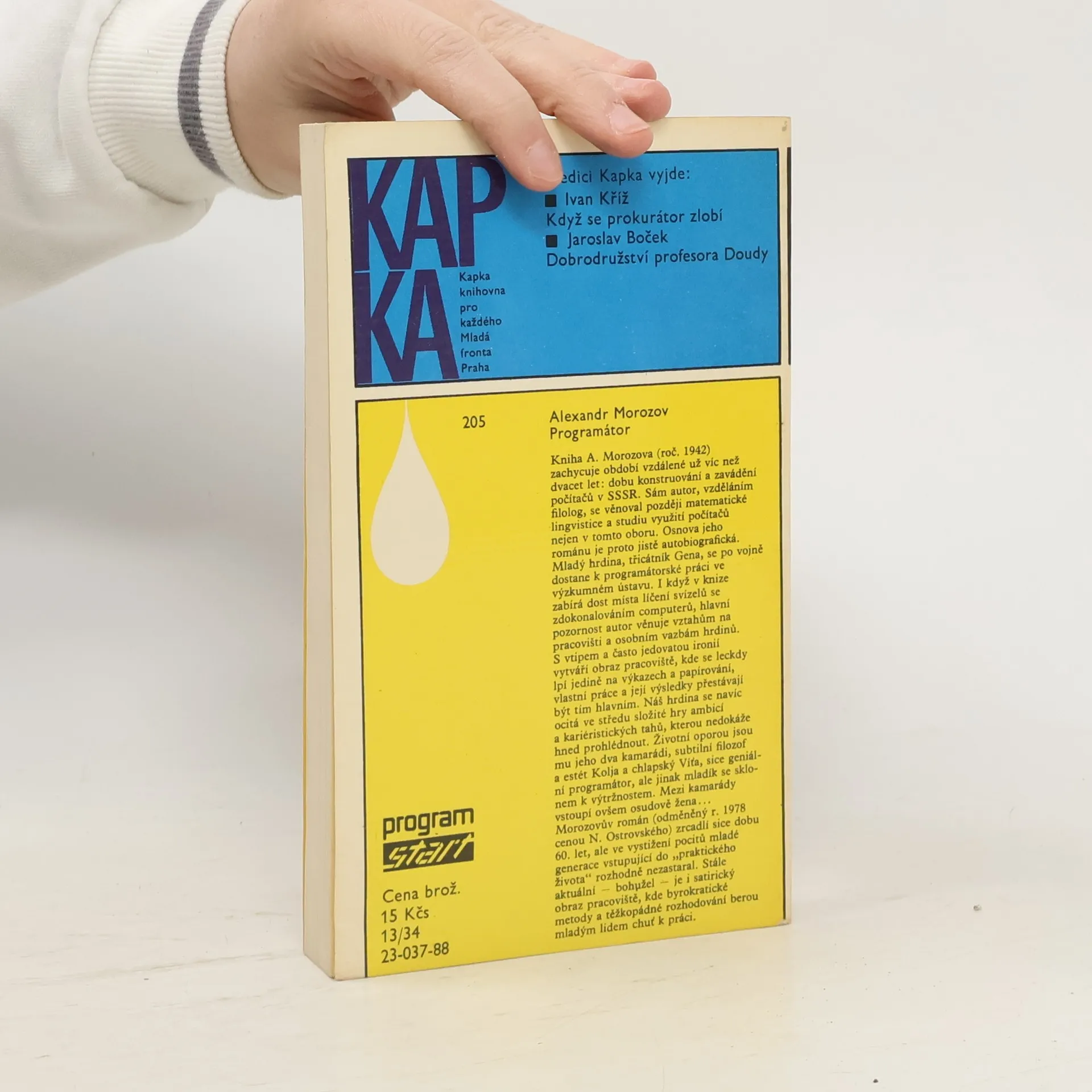 Kniha A. Morozova (roč.1942) zachycuje období vzdálené více než dvacet let: dobu konstruování a zavádění počítačů v SSSR. Sám autor, vzděláním filolog, se věnoval později matematické lingvistice a studiu využití počítačů nejen v tomto oboru. Osnova jeho románu je proto jistě autobiografická. Mladý hrdina, třicátník Gena, se po vojně dostane k programátorské práci ve výzkumném ústavu. I když v knize zabírá dost místa líčení svízelů se zdokonalováním computerů, hlavní pozornost autor věnuje vztahům na pracovišti a osobním vazbám hrdinů. S vtipem a často jedovatou ironií vytváří obraz pracoviště, kde se leckdy lpí jedině na výkazech a papírování, vlastní práce a její výsledky přestávají být tím hlavním. Náš hrdina se navíc ocitá ve středu složité hry ambicí a kariéristických tahů, kterou nedokáže hned prohlédnout. Životní oporou jsou mu jeho dva kamarádi, subtilní filozof a estét Kolja a chlapský Víťa, sice geniální programátor, ale jinak mladík se sklonem k výtržnostem. Mezi kamarády vstoupí ovšem osudově žena... Morozův román (odměněný r.1978 cenou N.Ostrovského) zrcadlí sice dobu 60.let, ale ve vystižení pocitů mladé generace vstupující do "praktického života" rozhodně nezastaral. Stále aktuální - bohužel - je i satirický obraz pracoviště, kde byrokratické metody a těžkopádné rozhodování berou mladým lidem chuť k práci.
