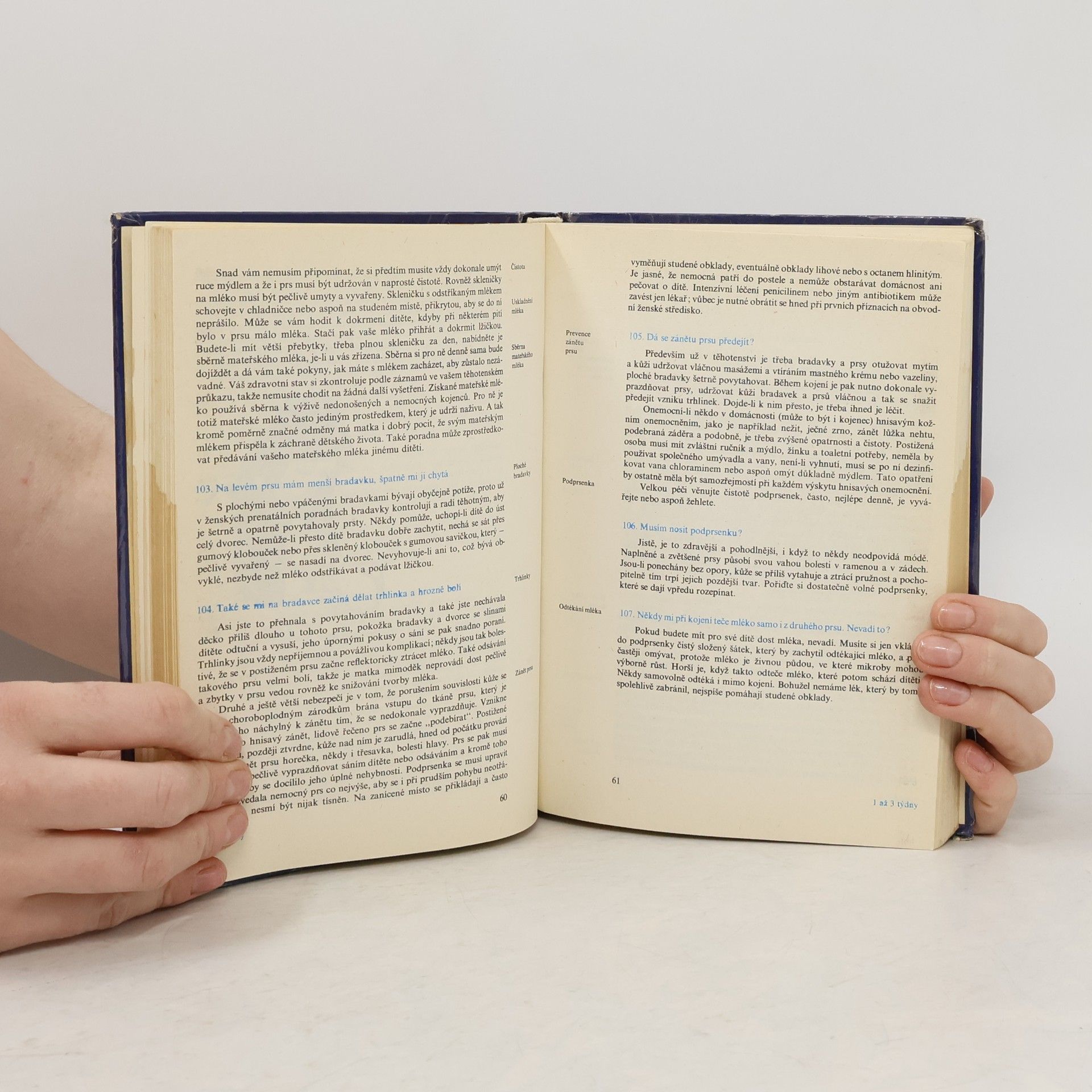 Odpovědi na otázky, s nimiž se maminky nejčastěji obracejí na lékaře v dětské poradně. Týkají se jak všeobecných problémů péče o novorozence, jeho krmení, koupání a oblékání, tak i některých odlišností kojeneckého věku v jednotlivých obdobích. Obsahují rady, jak postupovat při onemocnění a úrazech dítěte, vyvracejí některé rozšířené předsudky o výchově apod.