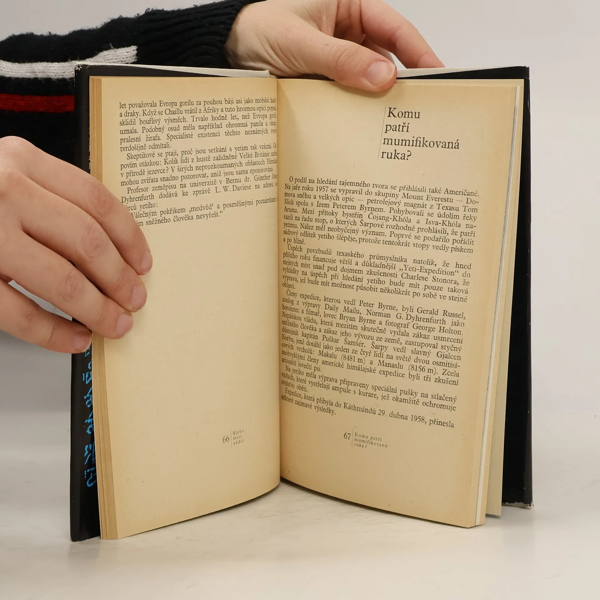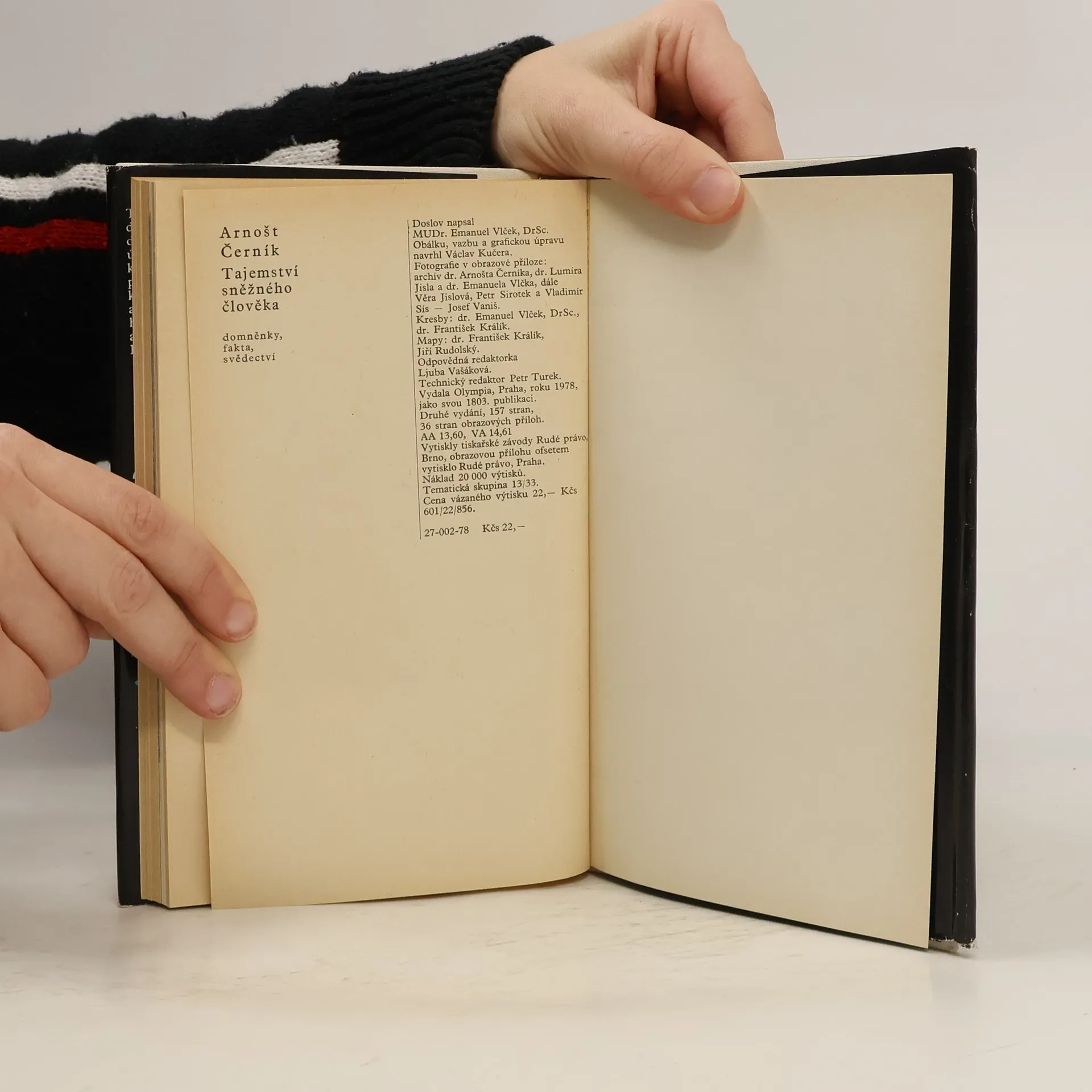 Druhé vydání populárně vědecké knížky seznamuje s vývojem názorů na existenci tzv. sněžného člověka, žijícího v nepřístupných oblastech Himálají. Tlumočí názory stoupenců i odpůrců existence yetiho, připomíná přínos československé vědykobjasnění této otázky aj. Druhé vydání je doplněno fotografiemi míst, kde byly nalezeny stopy po yetim, a snímky, jež zachycují svět lámaismu. Doslov Emanuel Vlček.