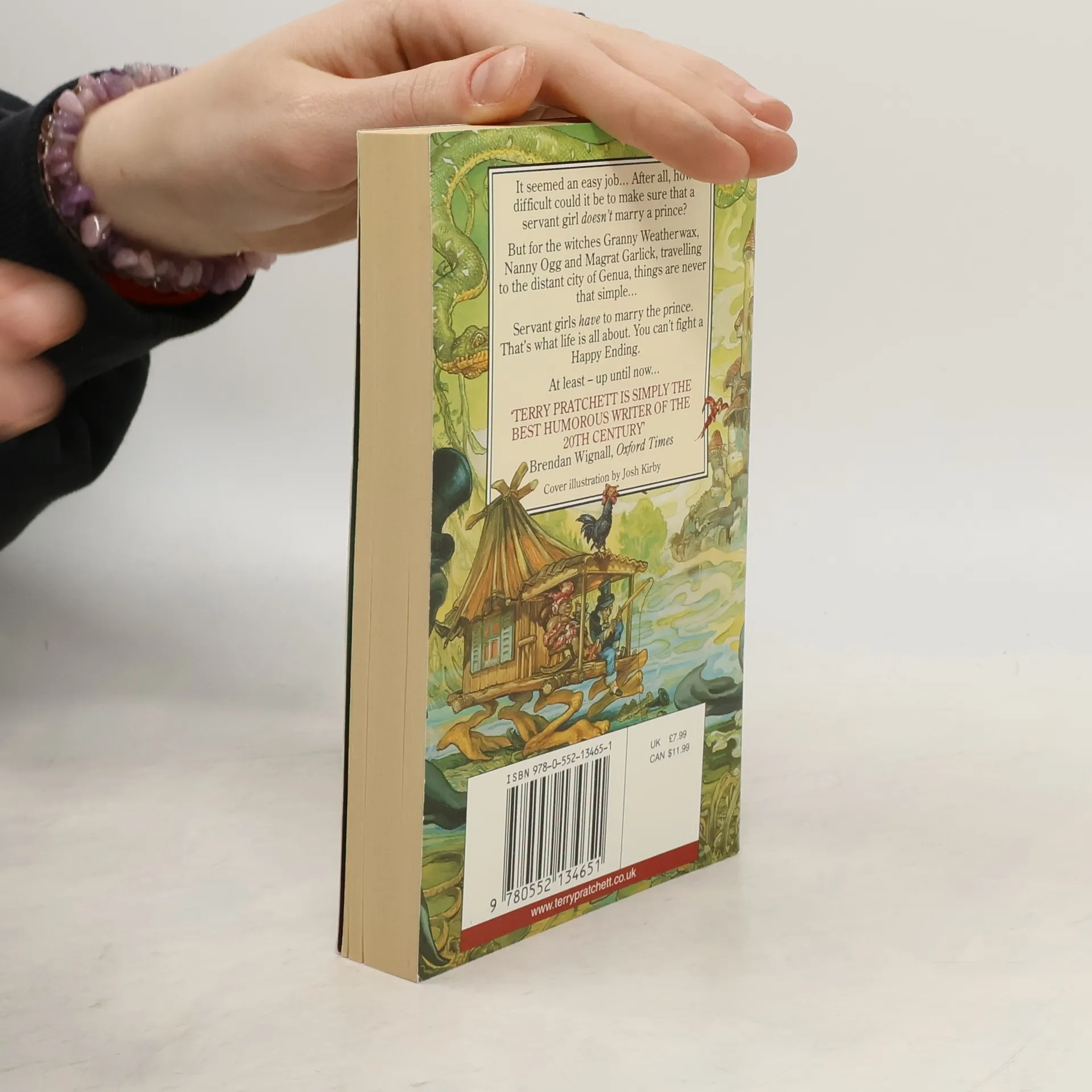 The twelfth Discworld novel — It seemed an easy job . . . After all, how difficult could it be to make sure that a servant girl doesn’t marry a prince? But for the witches Granny Weatherwax, Nanny Ogg and Magrat Garlick, travelling to the distant city of Genua, things are never that simple. Servant girls have to marry the prince. That’s what life is all about. You can’t fight a Happy Ending. At least — up until now.